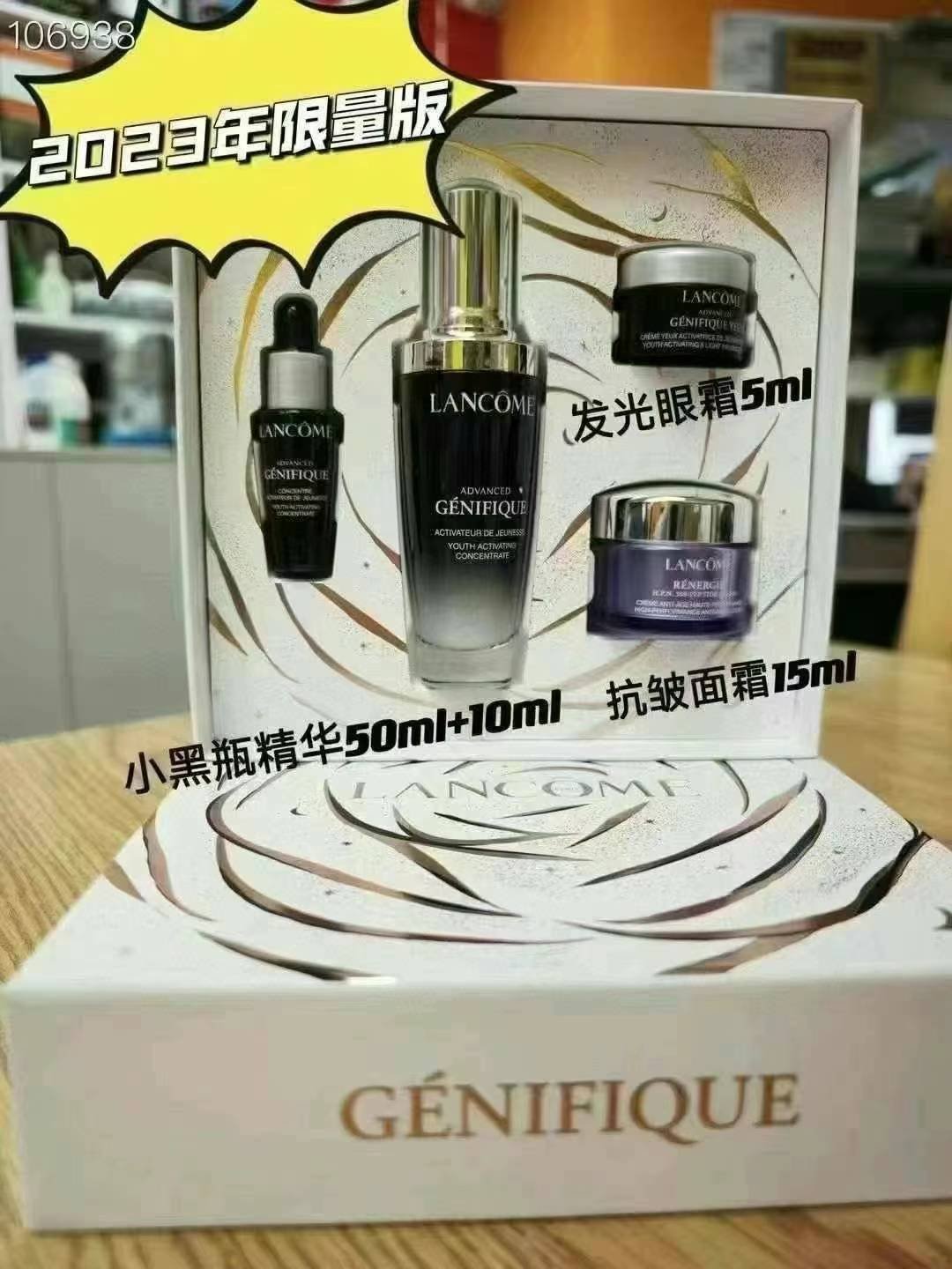 兰蔻小黑瓶精华套装套盒(小黑瓶精华50+10ml,小黑瓶眼霜5ml,抗老百肽雪花霜15ml)