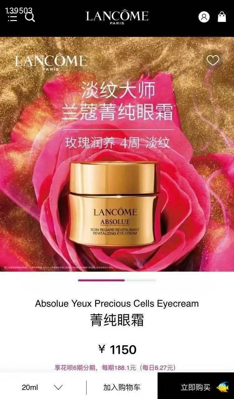 兰蔻菁纯眼霜显著去除眼纹哦,值得永远买一囤一
