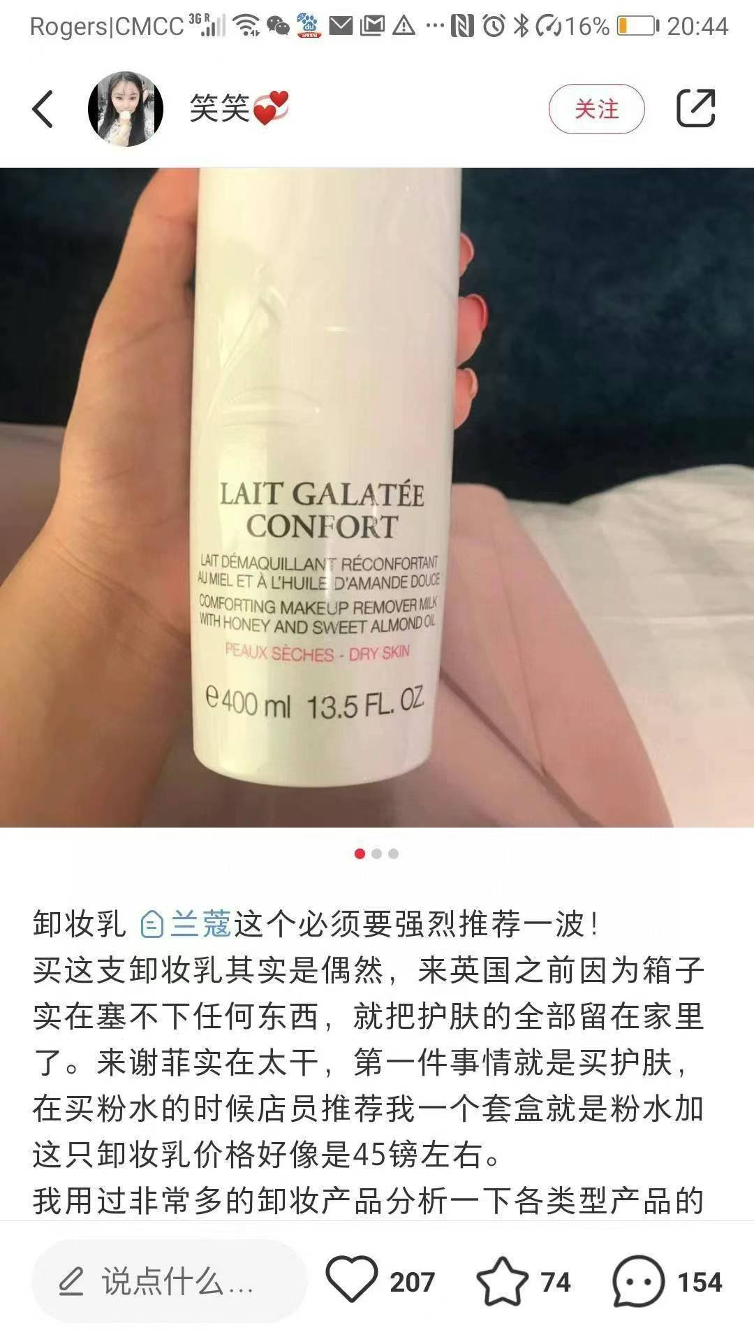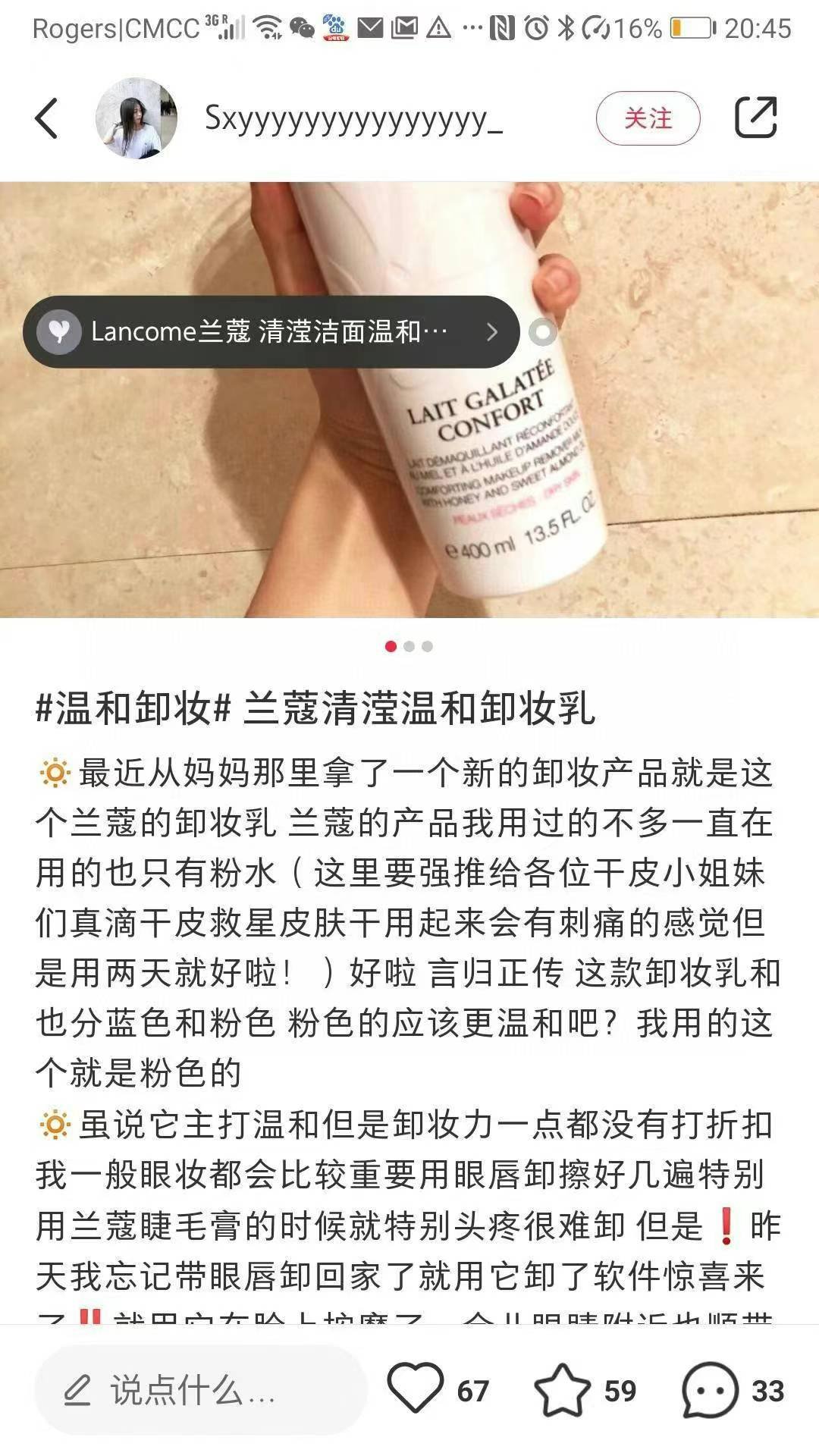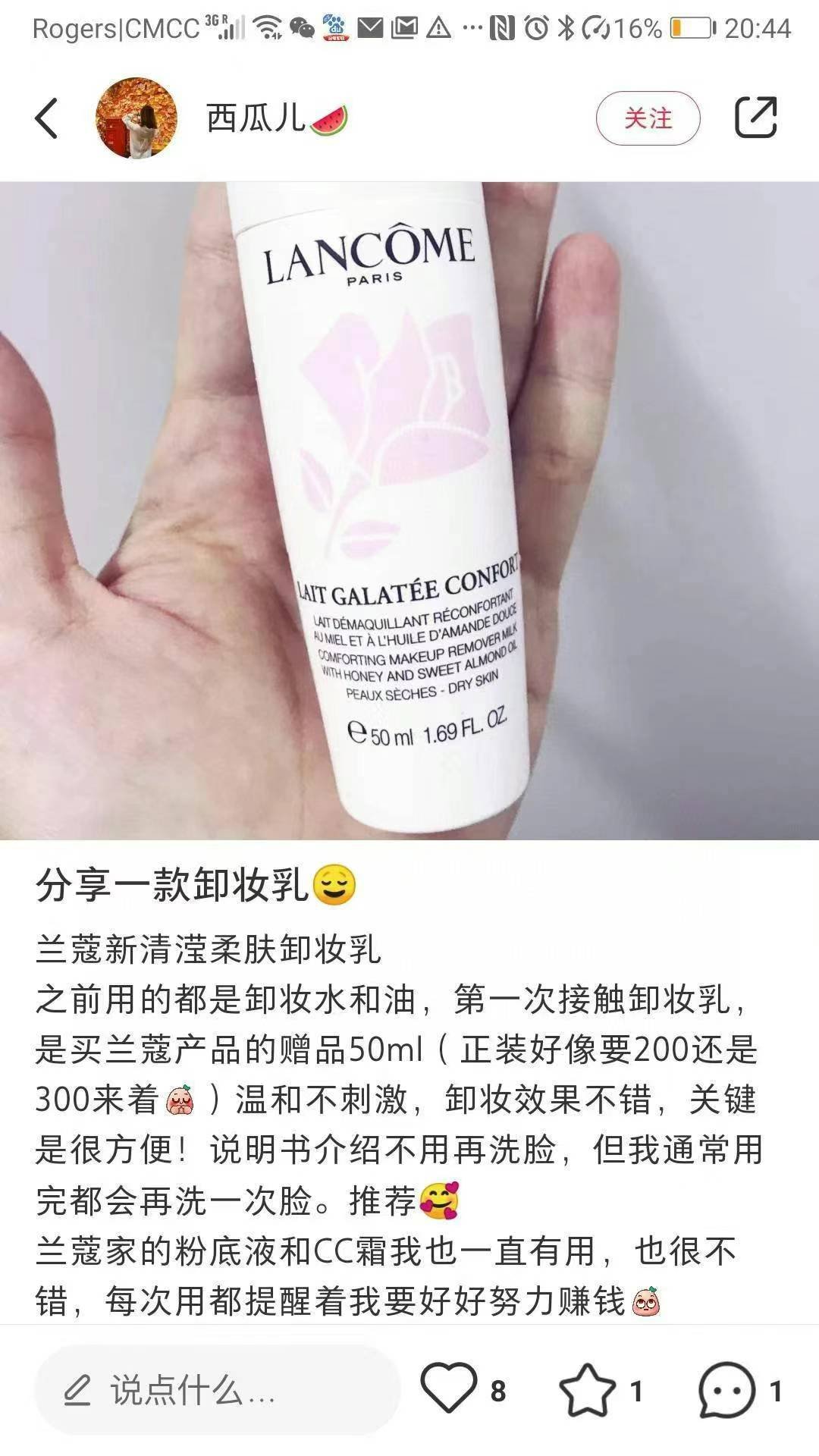 兰蔻 卸妆乳洁面400ml💰¥299包邮。夏天用了防晒霜请一定要卸妆!兰蔻卸妆乳温和不刺激,干手干脸按摩,用化妆棉擦干即可。而且超级好闻,集卸妆和洁面于一身的强大卸妆乳😎温和洁面慕丝能够清除肌肤杂质和多余油脂。去除污染能力,同时带给肌肤无尽剔透舒适感受。令肌肤滋养净化,倍加清爽,保湿效果好不紧绷