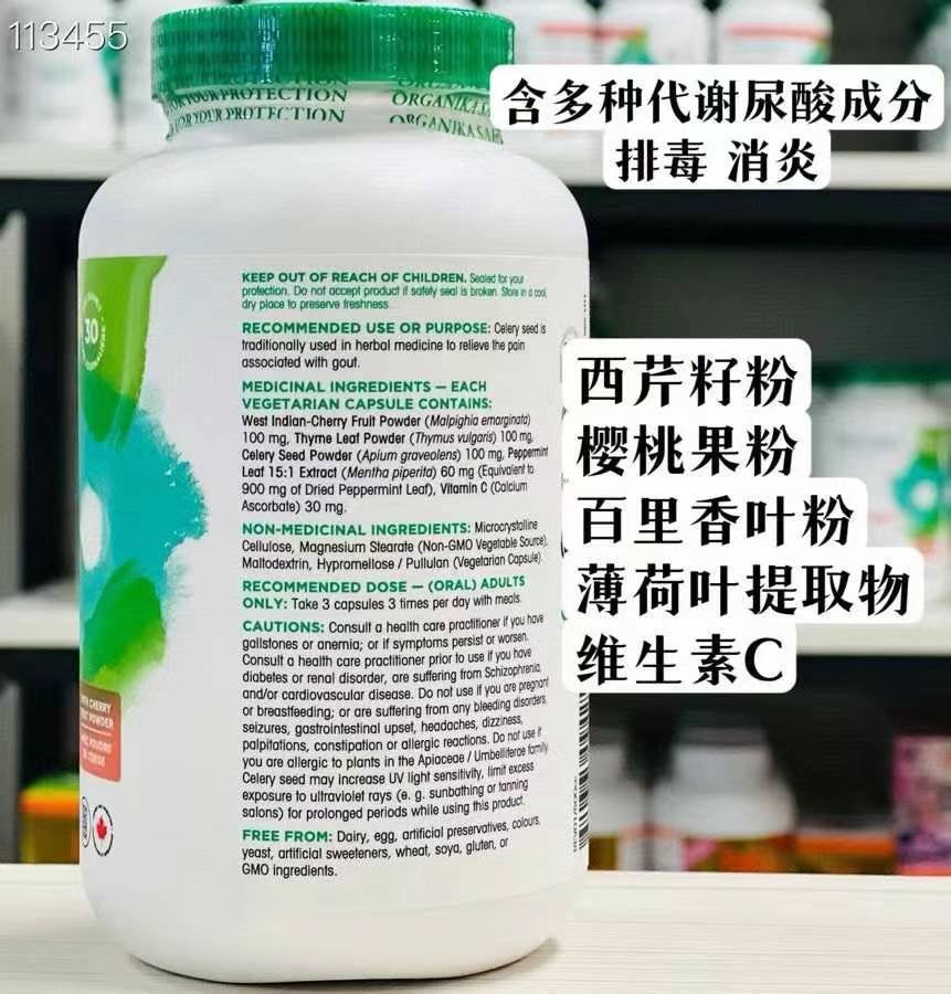 特价👍🏻加拿大🇨🇦organika最有效的明星产品痛风灵✌🏻,270粒/瓶,💰298/瓶,2瓶加拿大🇨🇦直邮,由天然黑樱桃🍒粉提取,帮助降低体内尿酸含量,改善痛风症状,痛风灵胶囊30毫克的维生素C作为抗氧化剂,降低血清中尿酸的浓度。另外,芹菜、樱桃、薄荷以及百里香中的植物可以被用作为抗氧化剂,痛风灵胶囊还能够很快的帮到患者消肿止痛,安全有效,