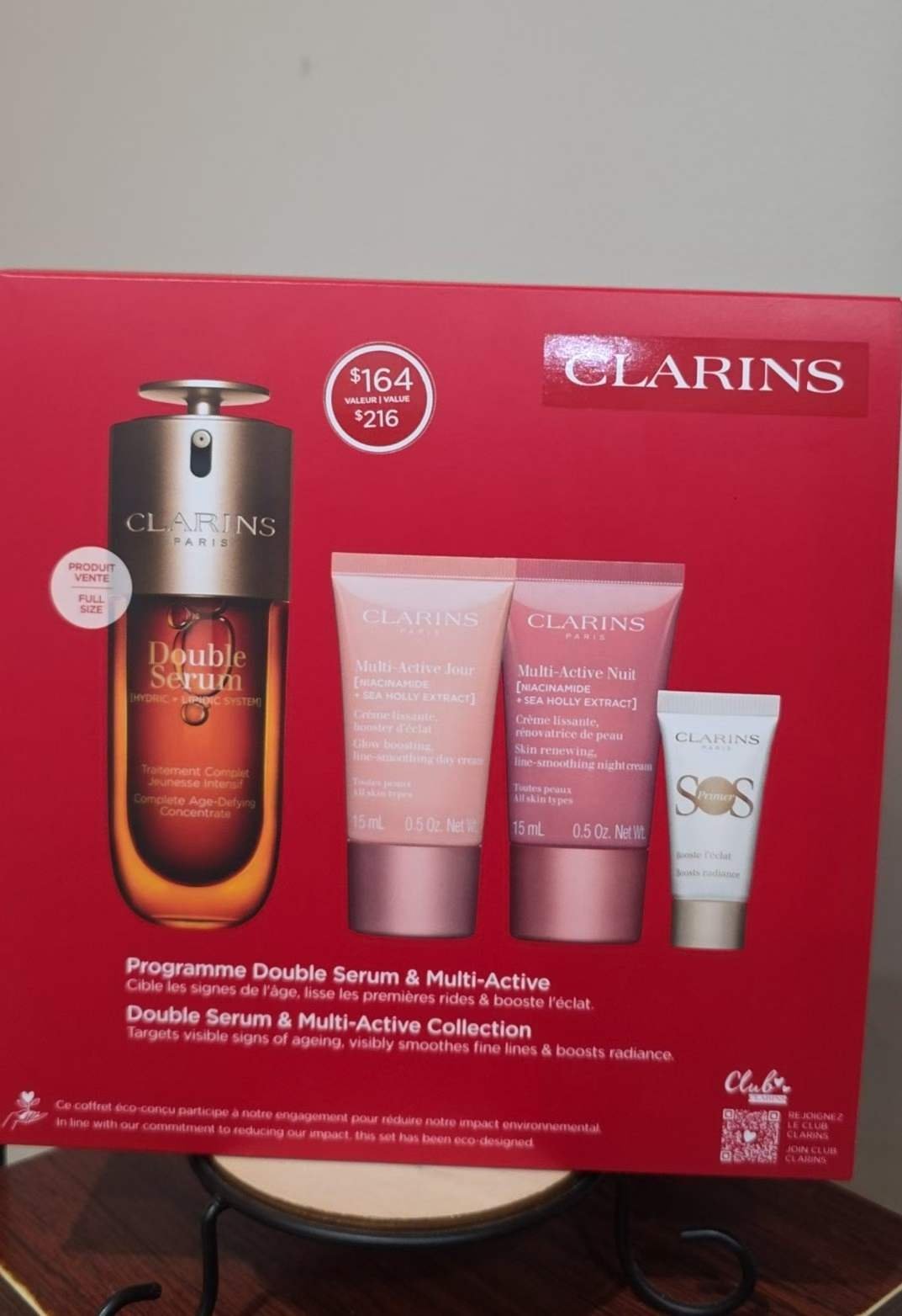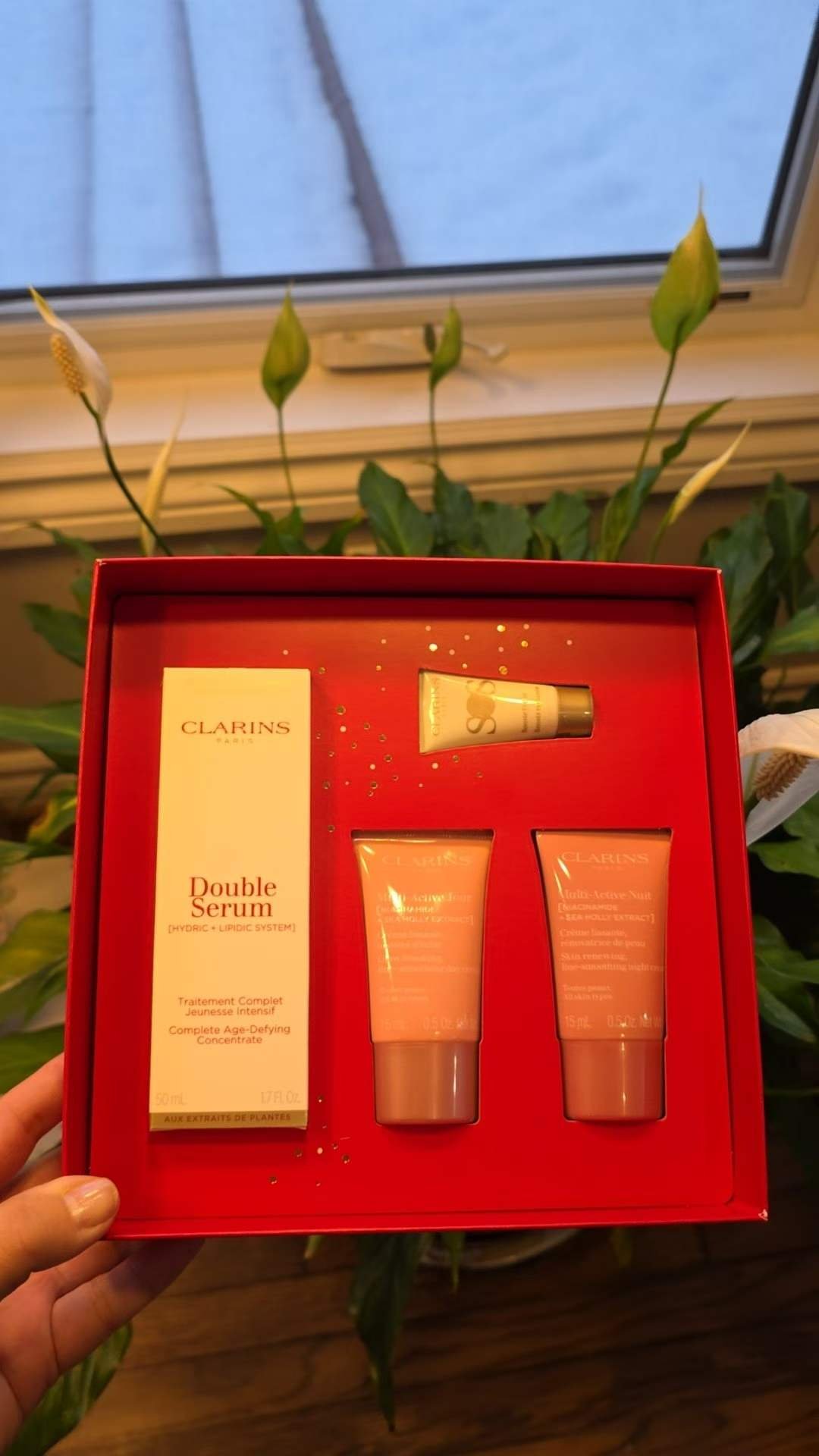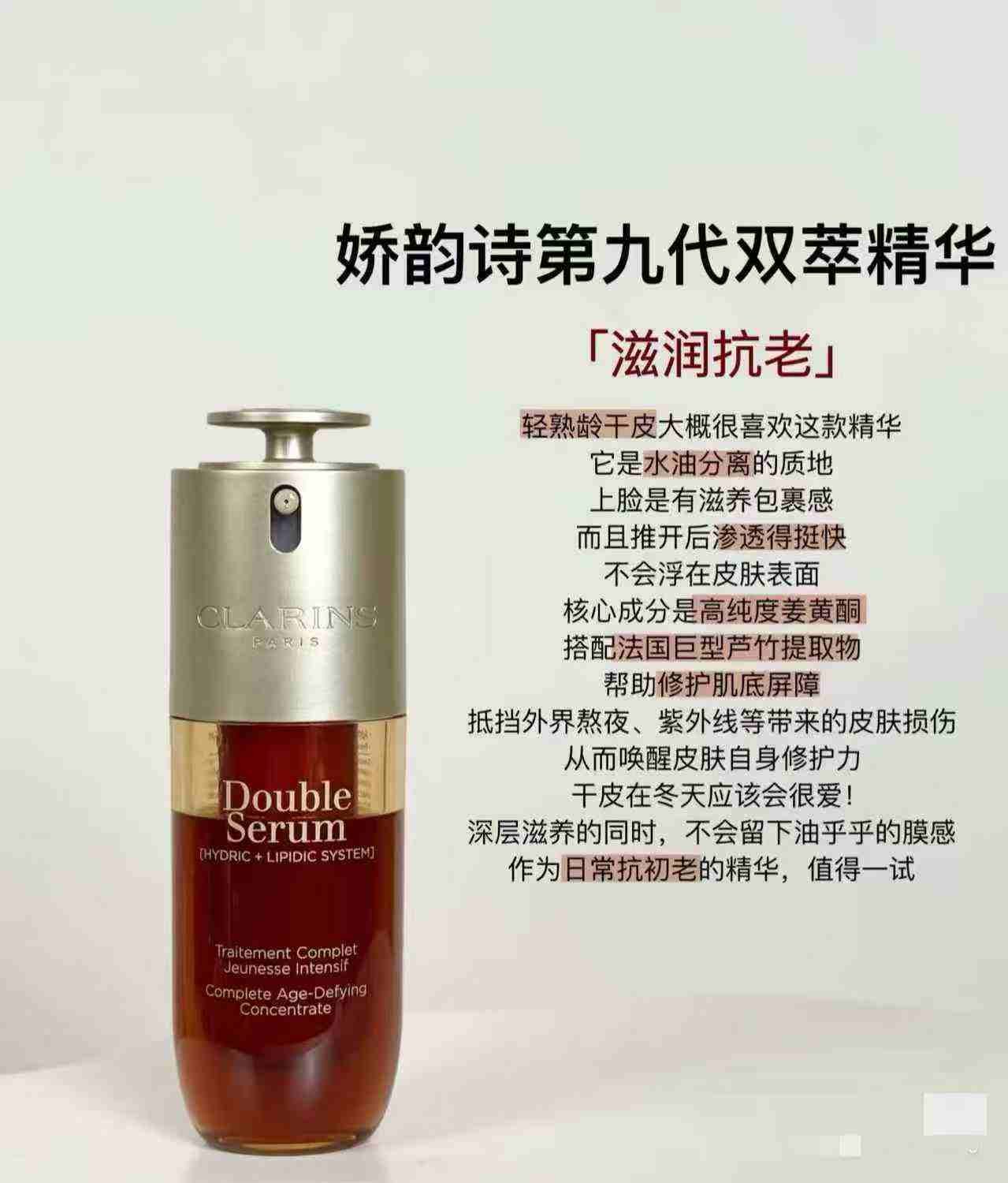 + Free Shipping黑五折上折,加拿大🇨🇦直邮¥698/一套(拆盒),娇韵诗圣诞限量版双萃精华套装。出道即巅峰,全新第九代「黄金双萃」前所未有的双源力量,不仅抗老更扛老!紧致淡纹,细嫩透亮,改变肌肤未来!6大独家专利加持,经典水油质地,开启抗老新时代‼️一瓶精简达成抗老+维稳高效护肤,肌肤负担小,吸收更快,效果杠杠滴!50ml精华+活力日霜15ml+活力晚霜15ml+sos妆前乳。礼盒装极其划算,30ml面霜算送的。