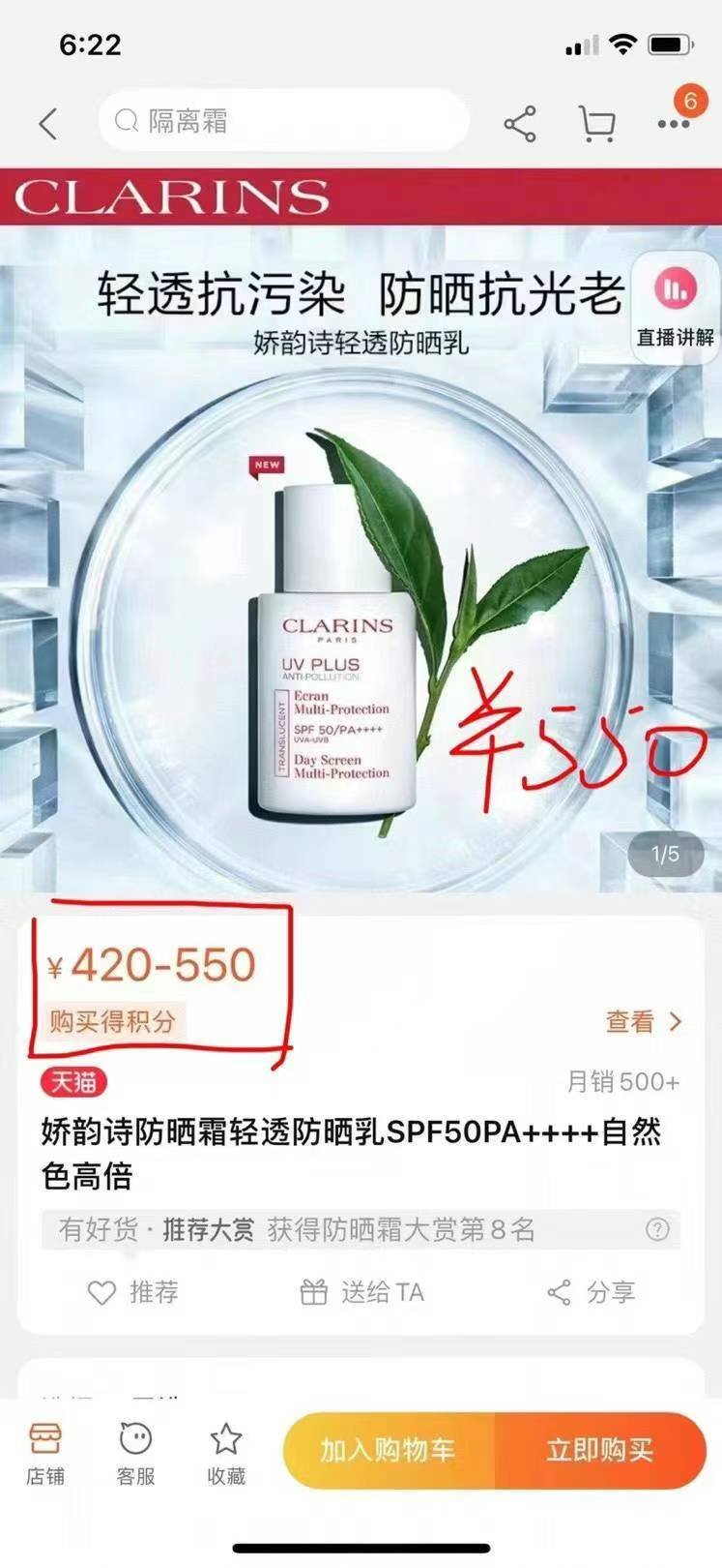 娇韵诗防晒霜防晒隔离 SPF50敏感肌及孕妇都可用的一款产品50ml