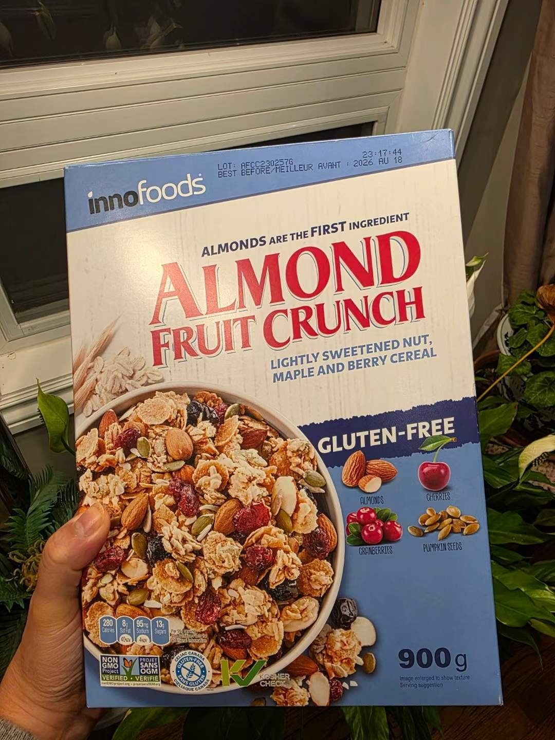 特价🉐️Innofoods (加拿大著名健康零食公司)杏仁水果谷物脆脆乐 900克,内含南瓜子,杏仁坚果,樱桃,蔓越莓干,随便一抓都是满满干货,货真价实,是一款无麸质、含坚果和水果的健康营养早餐麦片,适合直接食用(空口吃很香很脆)或搭配牛奶、酸奶都可。主要成分是杏仁、燕麦、玉米、南瓜籽、蔓越莓、樱桃、椰子等,无人工香料,色素、无麸质、非转基因等,本周特价加拿大包邮¥198