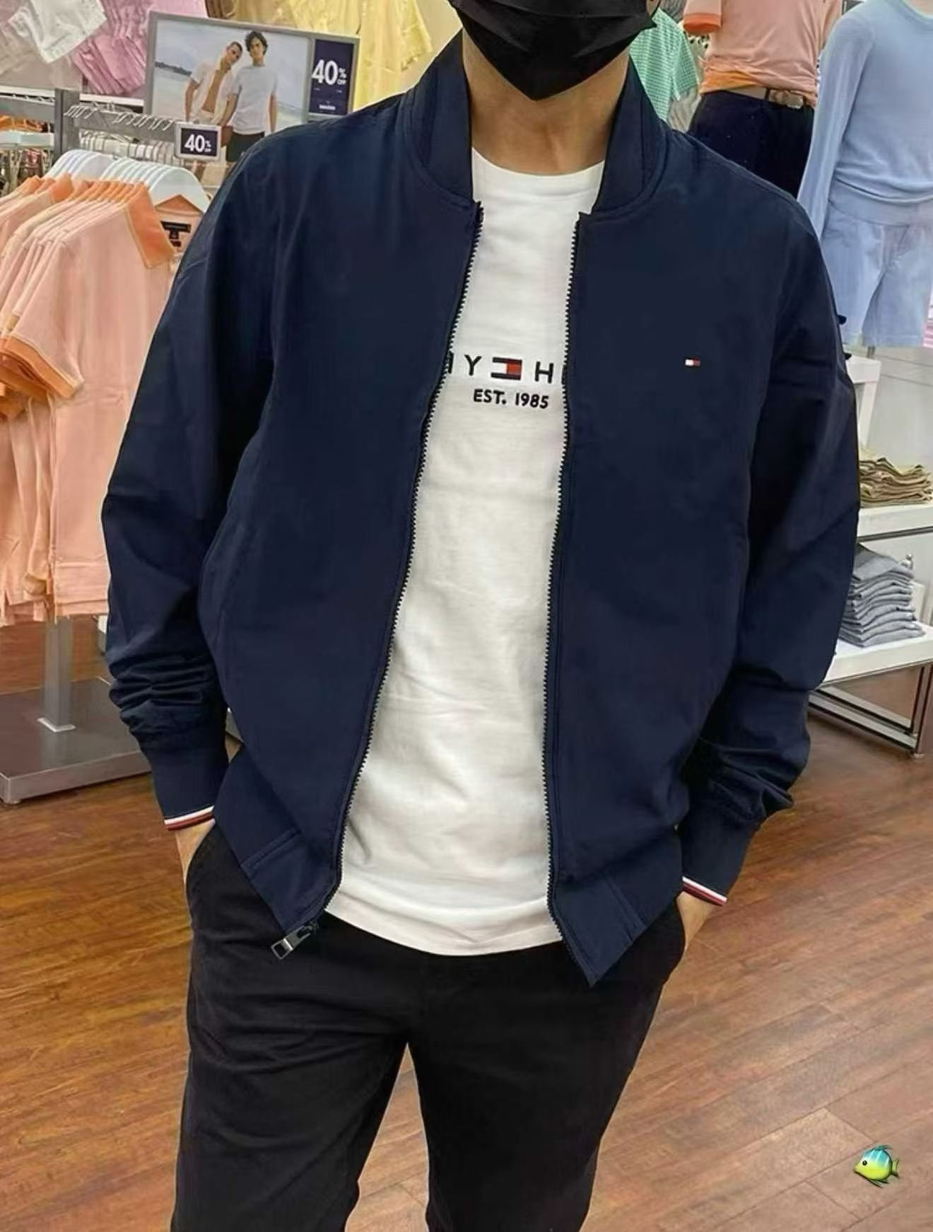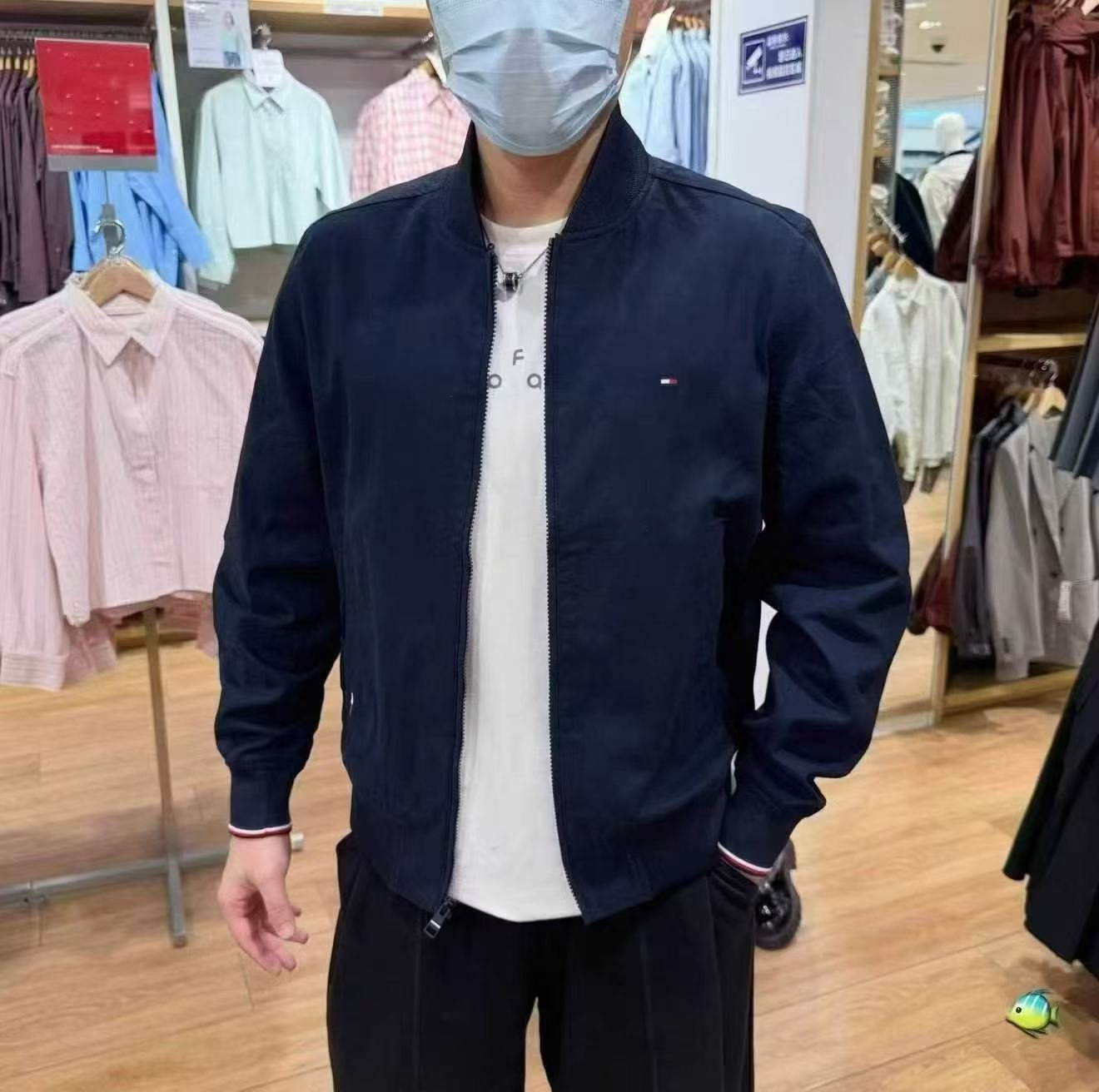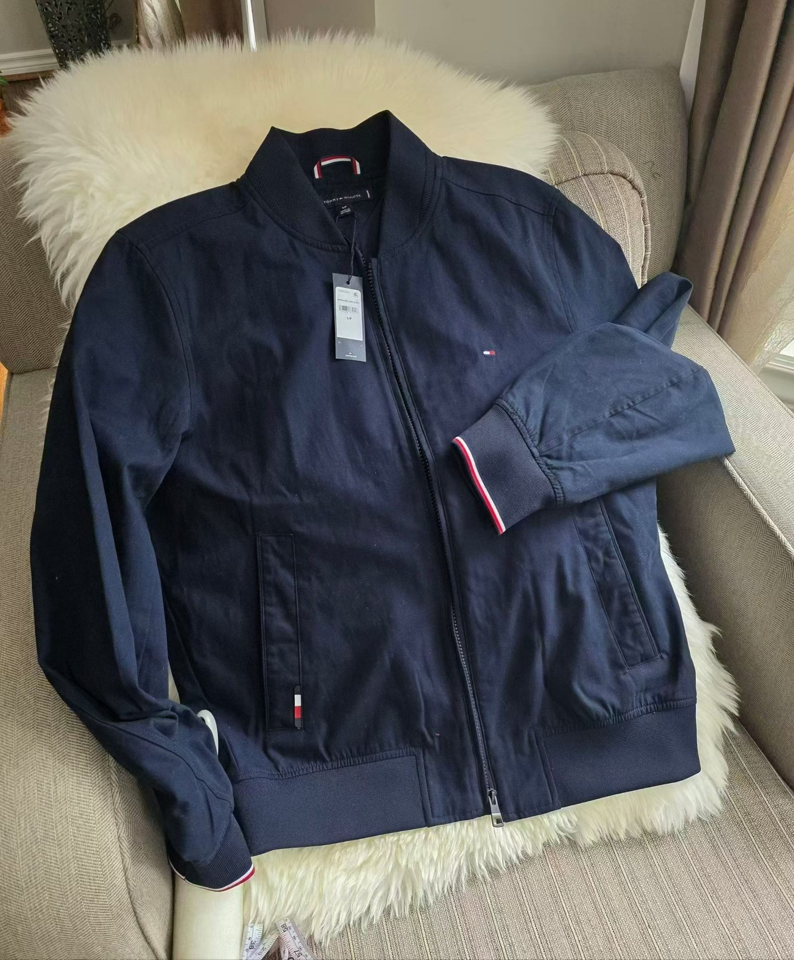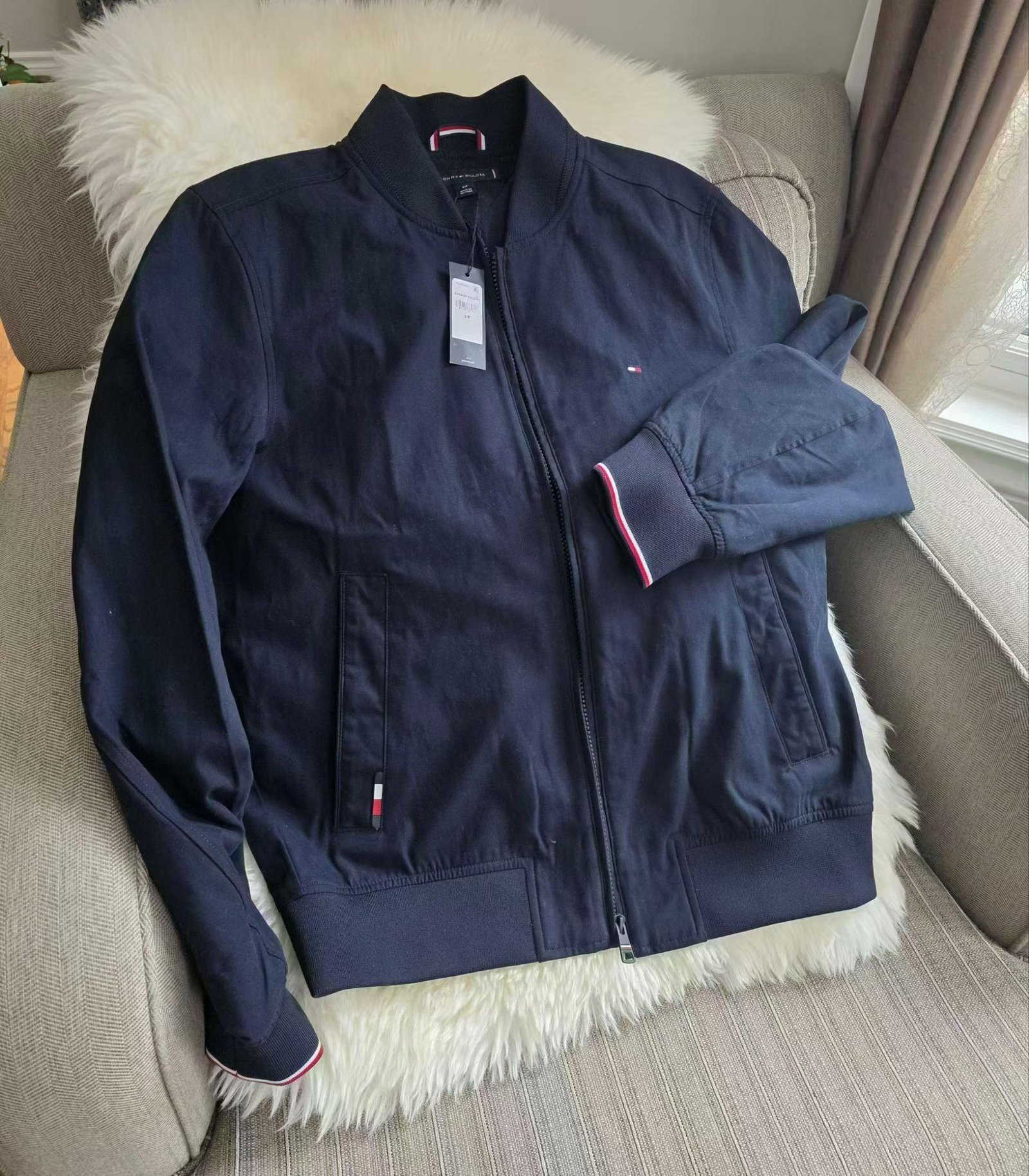 TOMMY HILFIGER 折扣 男士既可商务又可休闲,全棉拉链棒球领夹克,属百搭外套 ,很有质感的纯棉棒球衫款百搭外套,剪裁哪哪都精致合适。低调小标在胸前,口袋边,搭配藏青色清爽活力,稳重又帅气。是Tommy 的捡漏款,原价219刀税前,现在人民币680到手,类似款国内官旗折后1833。(质感可比国内官旗的好很多。)