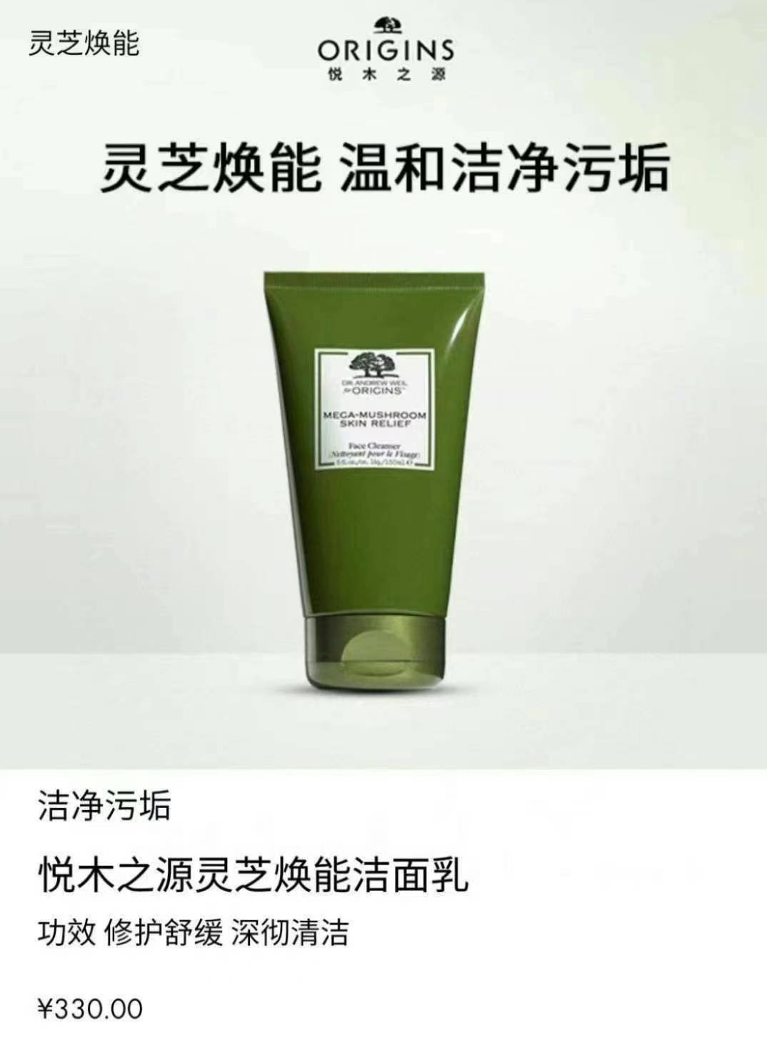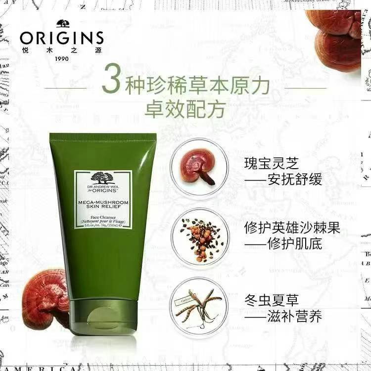 origins悦木之源 韦博士灵芝焕能洁面洗面奶温和卸妆二合一 150ml💰168元/支,拼邮,温和不刺激,而且还是洁面和卸妆二合一,更方便,含有三种珍稀草本成分。灵芝安抚舒缓,沙棘果修护基底,冬虫夏草滋补营养,肤感好,效果更好。
