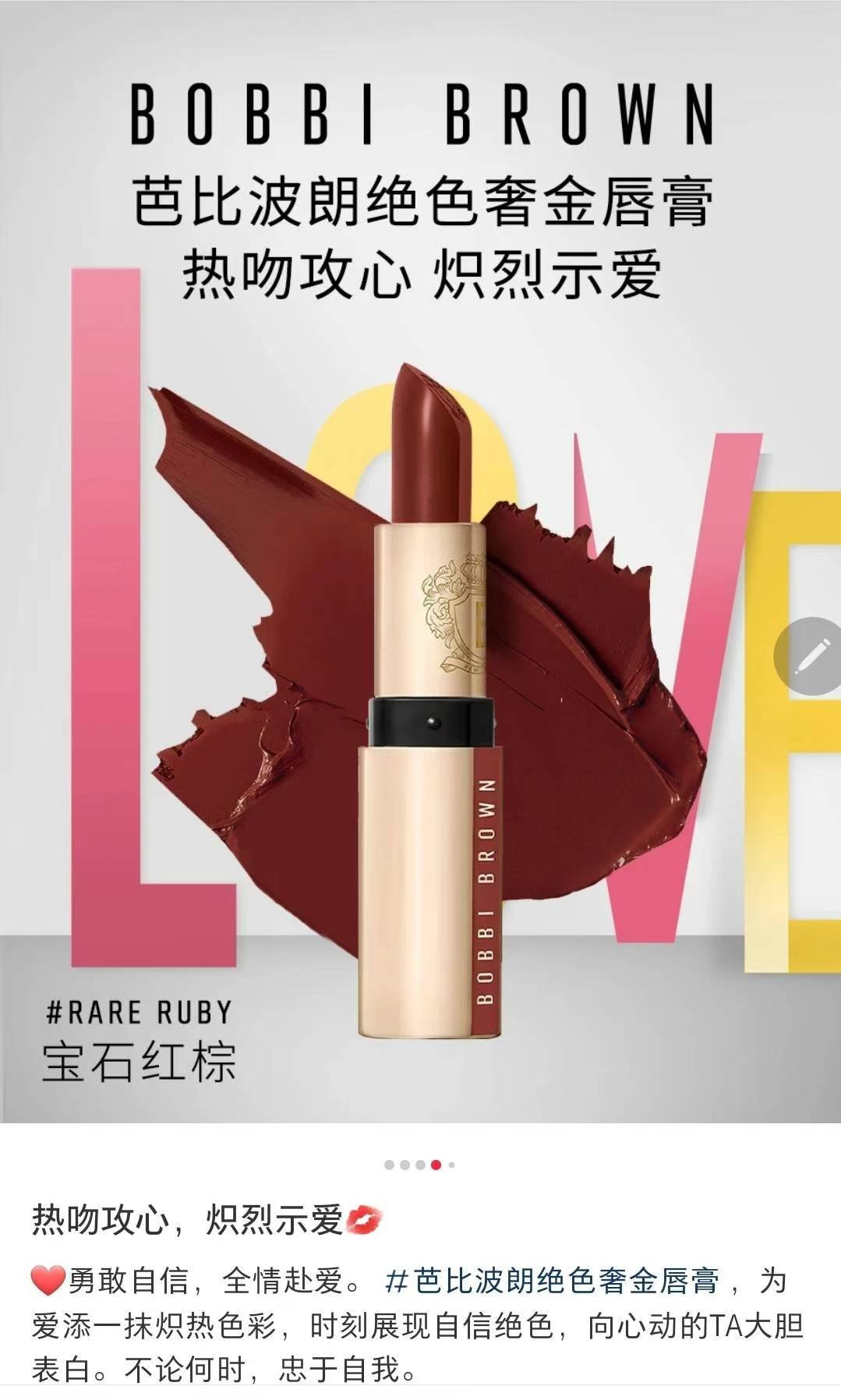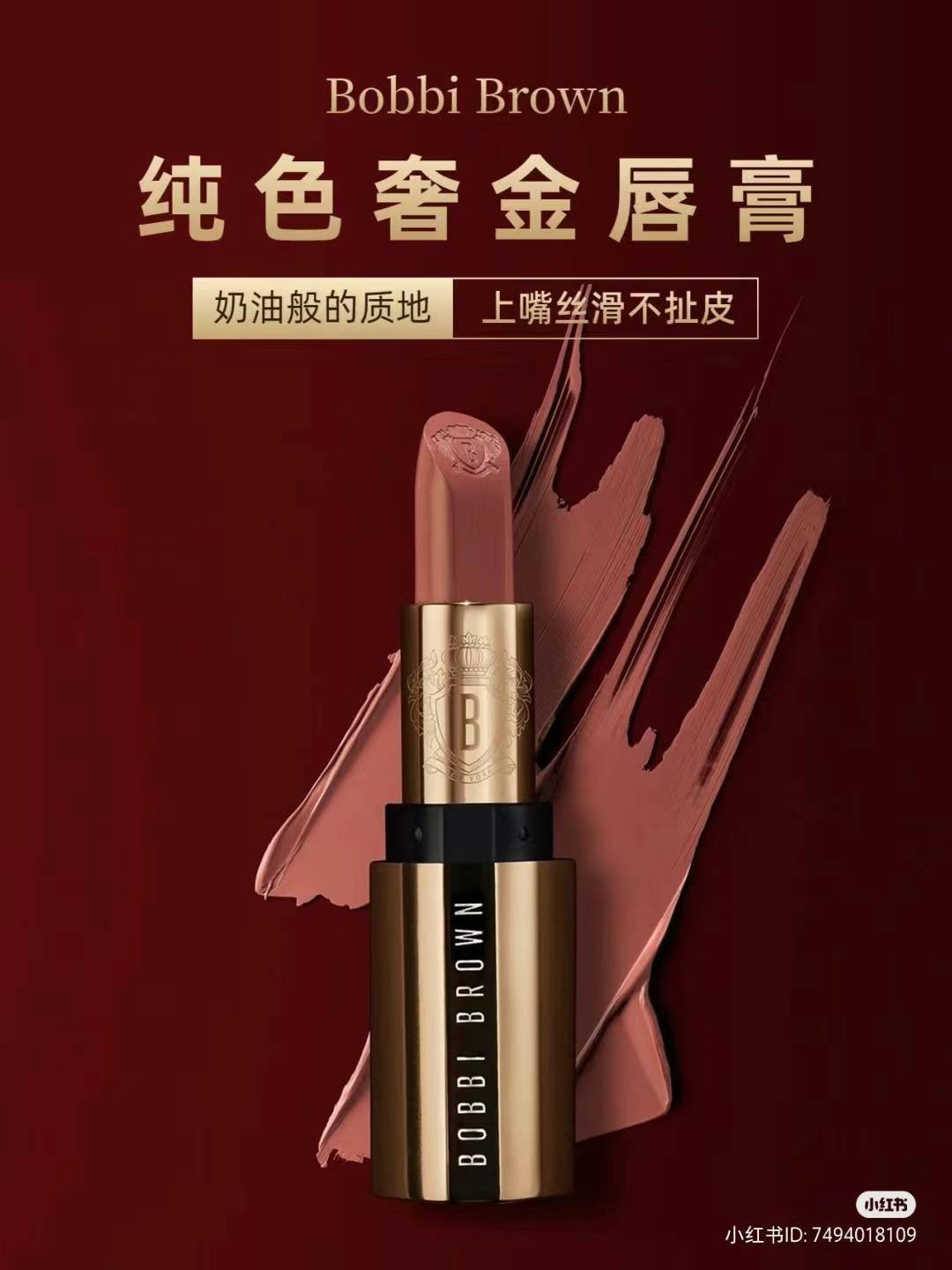 + Free Shipping芭比布朗著名纯色奢金口红!大特价¥168/支拼邮,拿在手里沉甸甸的很有质感,logo标志在口红壳上也在口红上,做工非常精致,符合品牌号称奢华的感觉。