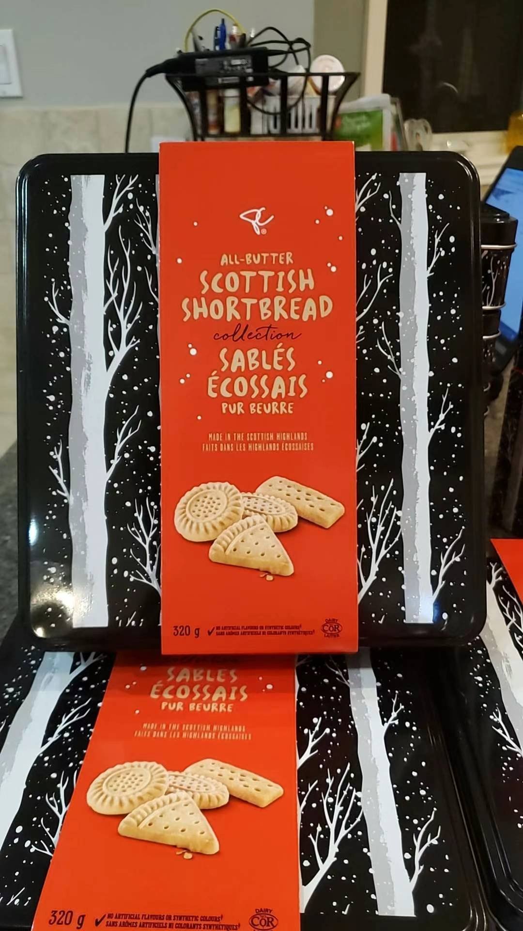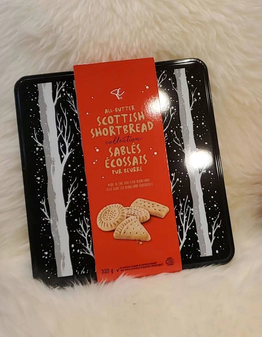 吃货有福了,有机会尝下真正的苏格兰全黄油饼干集锦(手指,三角,圆形,椭圆四种形状),奶香诱人,美味可口,不是很甜,符合中国人口味。完全是纯黄油制成,所以被称为all butter。 这款饼干是由加拿大著名食品公司PC专门从苏格兰进口,真正的苏格兰黄油饼干,是饼干中的贵族,价格一直曲高和寡,很贵,这次的折扣很难得,珍惜。 铁盒装黄油饼干,净含量320g:128元一盒直邮。