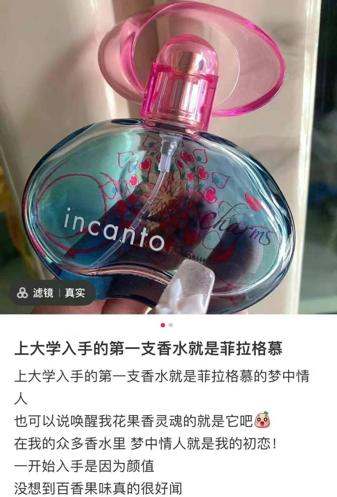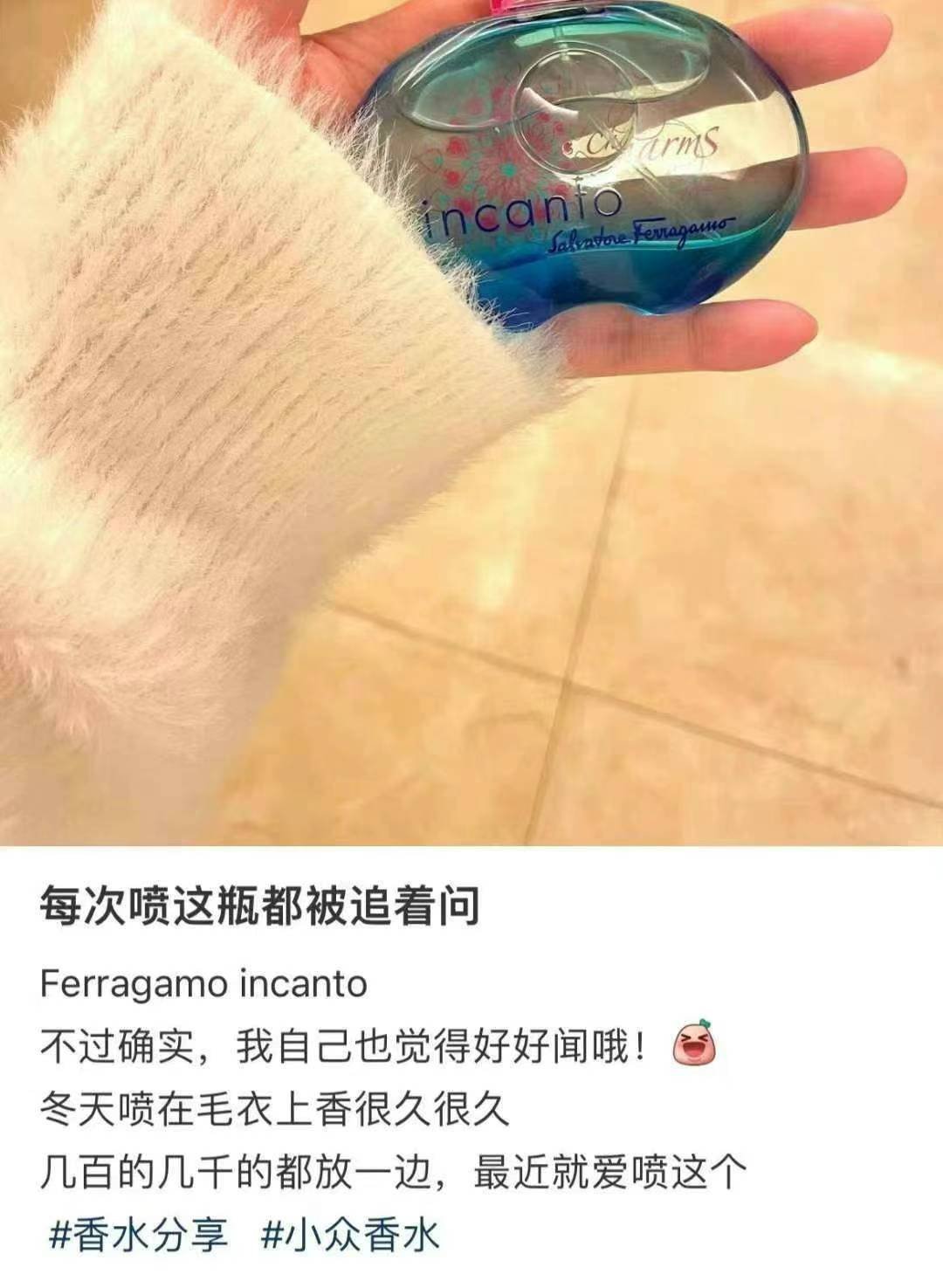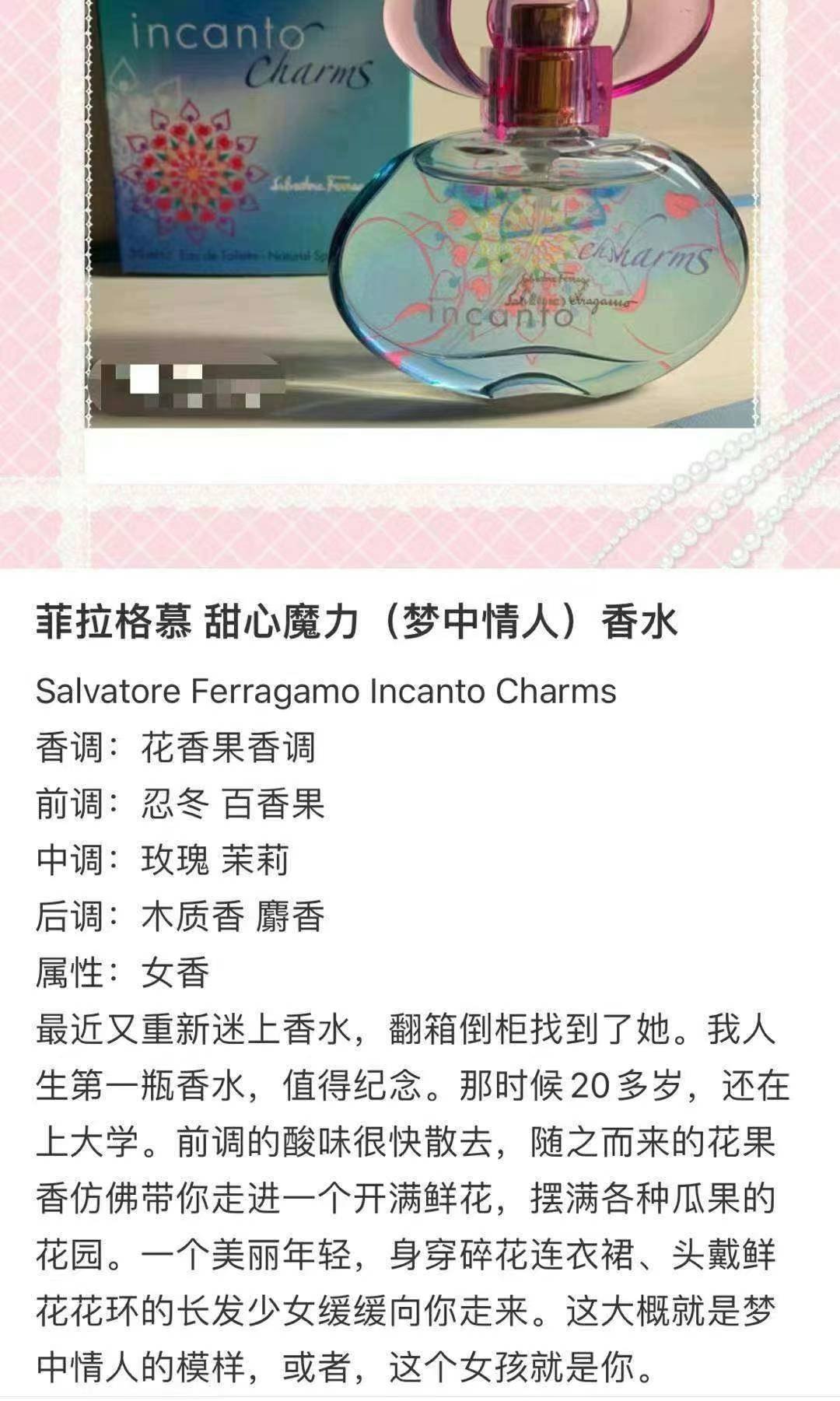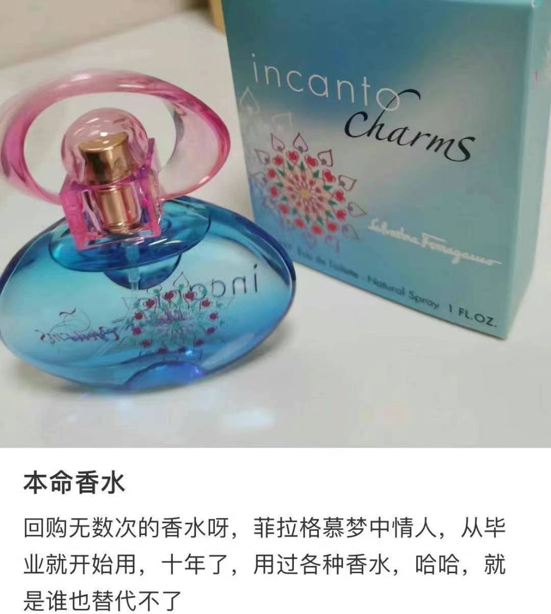 史低价🉐️¥228/瓶,50ml,加拿大🇨🇦直邮。玛丽莲梦露御用牌子,菲拉格慕Incanto爱情魔咒系列香水,史上最成功的一款香水,国内30ml就要¥380元。透明圆弧的香水瓶是由著名雕塑设计师Serge Mansue所设计,很值得收藏Incanto charms 梦中情人淡香水,味道甜美而清新,喷在身上都感觉自己如少女般青春活力,年轻乐观向上❗️