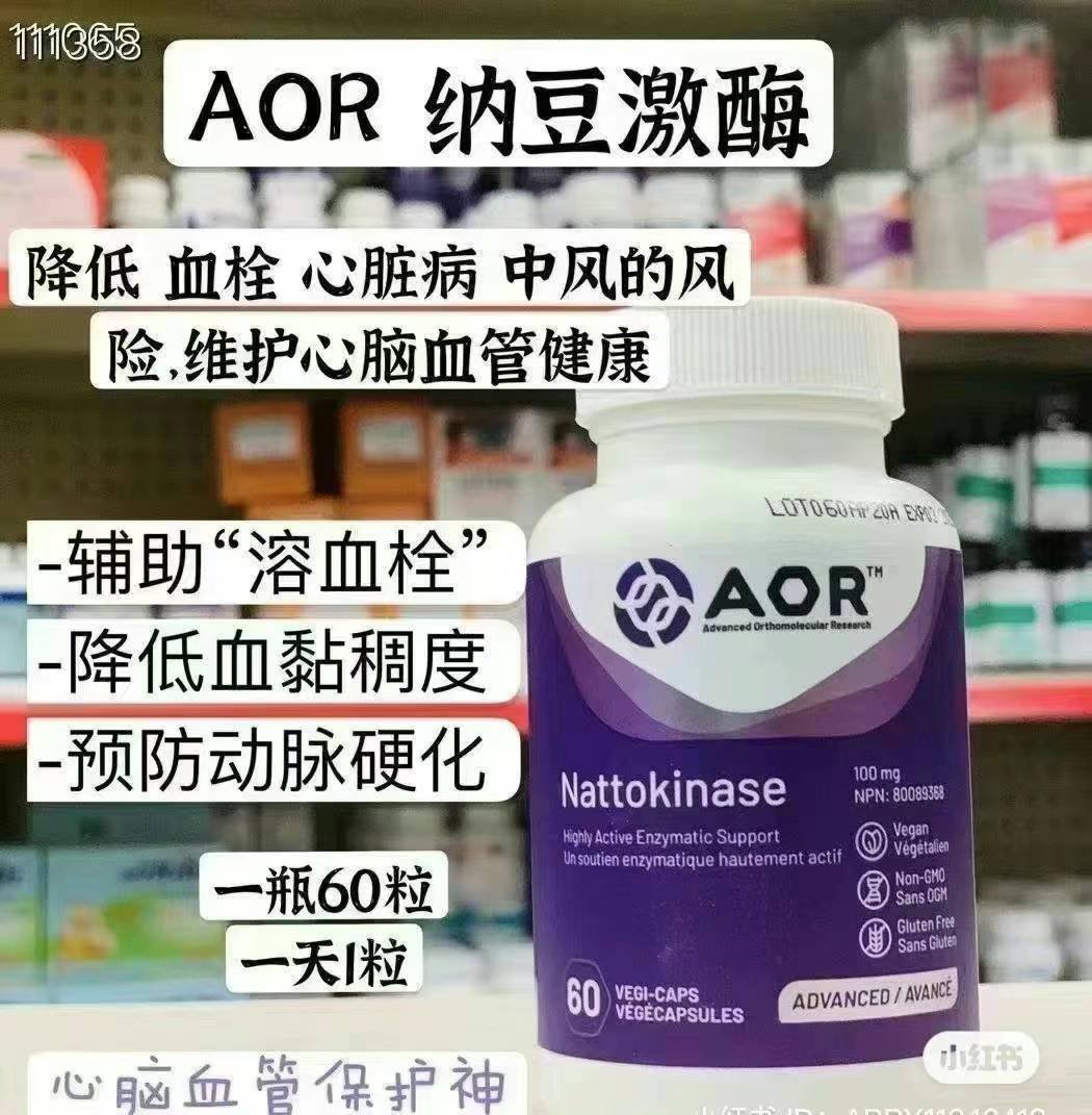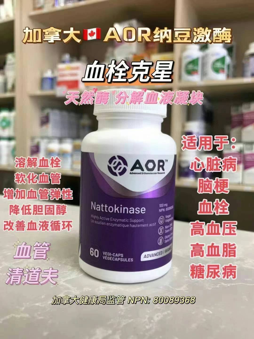 加拿大🇨🇦【AOR】纳豆激酶60粒提供高活性酶支持,促进心血管健康、帮助分解异常血块、使血流正常化并充当血液稀释剂、降低心脏病发作、中风和血栓形成的风险因素。