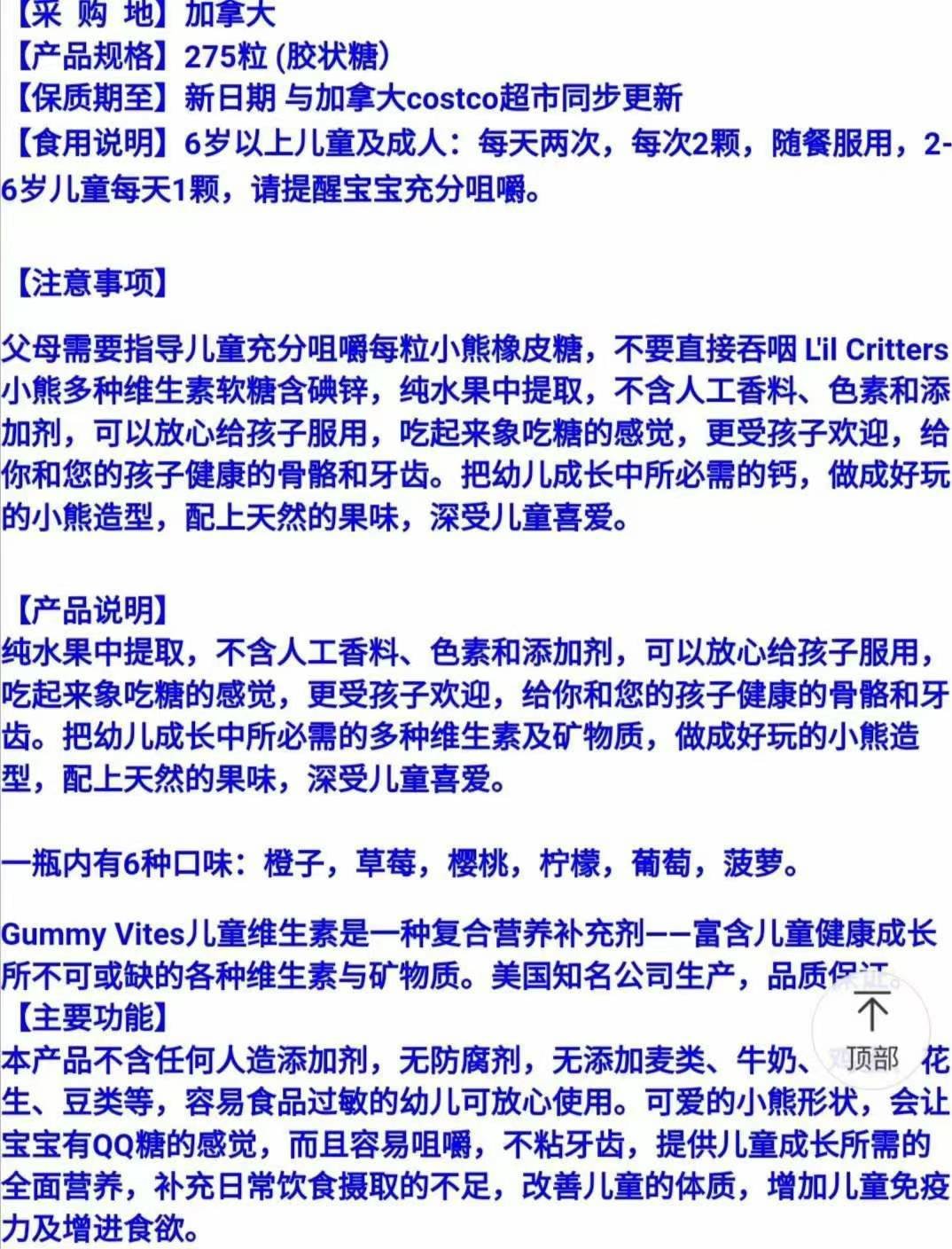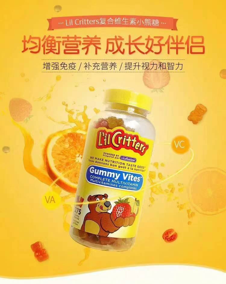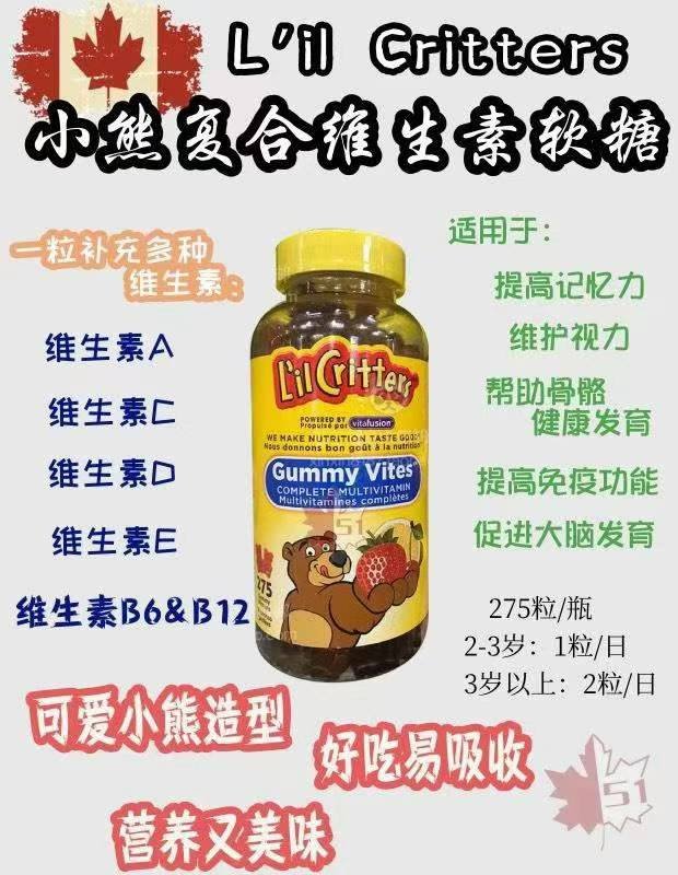 + Free Shipping🇨🇦L’il Critters小熊糖多维🔥¥218,加拿大🇨🇦L’il Critters小熊糖多维,新包装!补充维生素A、C、D、E、B6、B12及碘、锌、叶酸等等多达18种以上的人体必需的维生素。🍒🍇🍉纯水果提取,不含任何人工色素、人工香料、防腐剂和添加剂,一天简简单单2粒,含糖量仅3g,远远低于孩子每日摄取糖份的上限50g,完全不用担心蛀牙和长胖哦[调皮][调皮]像吃QQ糖那样吃两颗[色][调皮]妈妈再也不用担心宝宝挑食偏食啦。