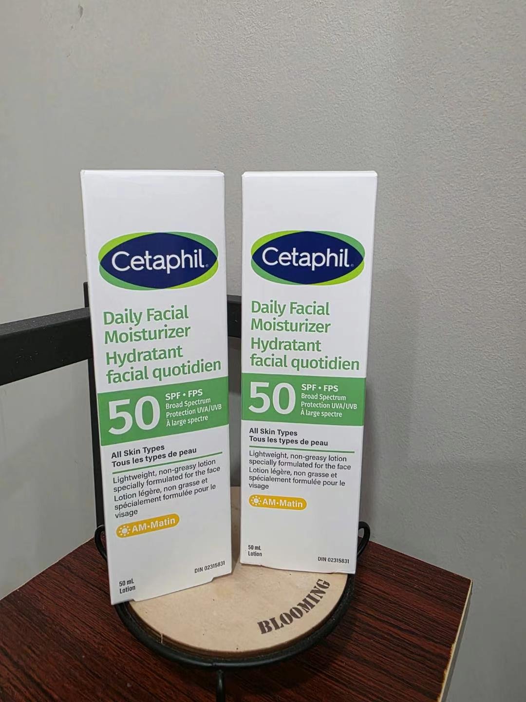 著名药妆品牌Cetaphil丝塔芙面部防晒霜SPF50 50ml,是温和无油且双重抗UVA/UVB的防晒保湿霜,不仅可以有效帮助肌肤抵御紫外线UVA和UVB还可以日常面部保湿。这款被皮肤科医生推荐,推荐用于全年的面部防晒。不含香料及任何引起过敏的成分,无油配方,不会阻塞毛孔,迅速吸收不油腻,不会引起粉刺。适合所有皮肤,特别是敏感性的皮肤!12岁以上小朋友可以用。这款是真正加拿大生产,并且拥有加拿大药品识别码,这意味着产品的安全性,有效性,质量得到了加拿大政府的审批,批准上市,纳入加拿大药品库,其质量安全性有保障。