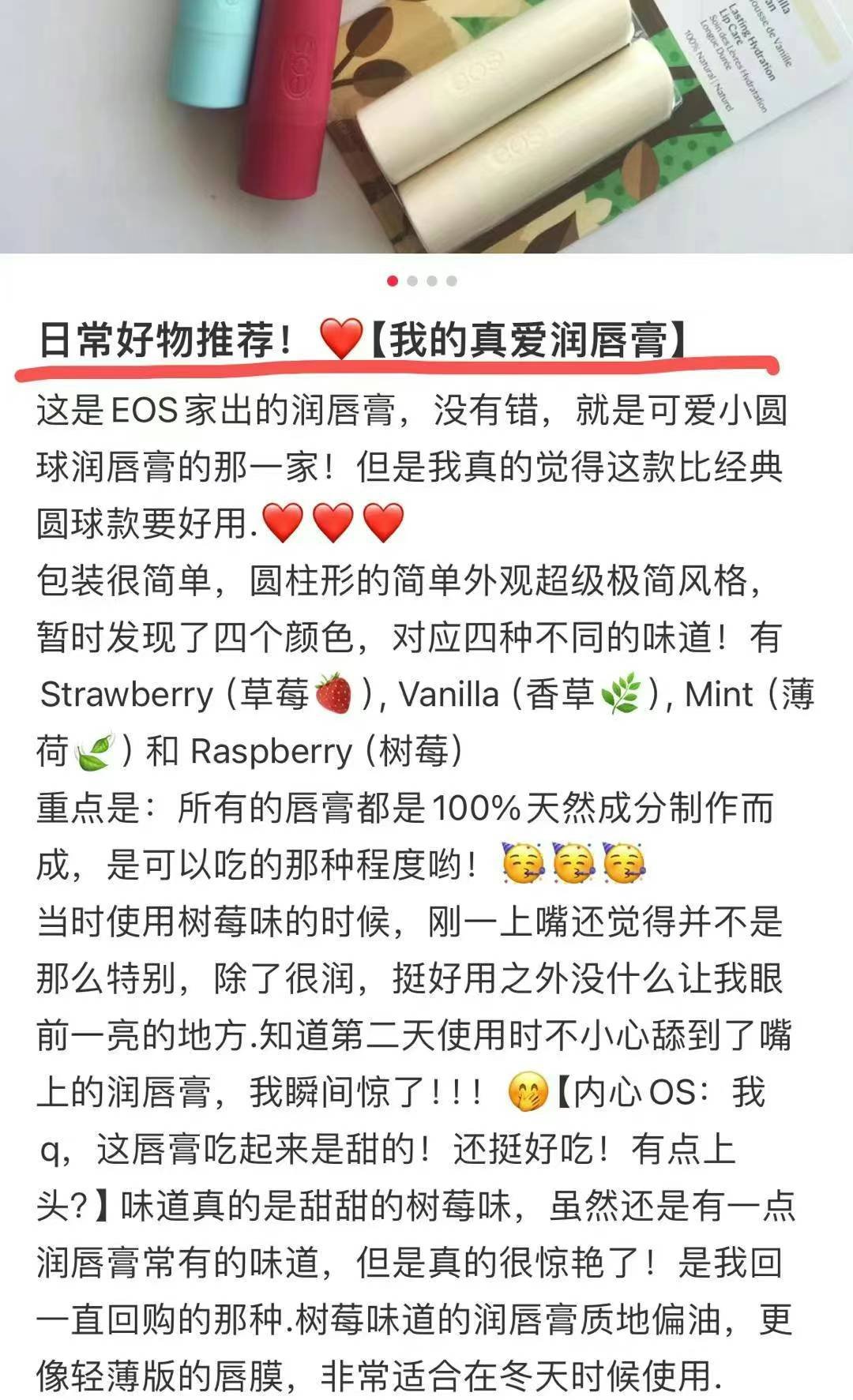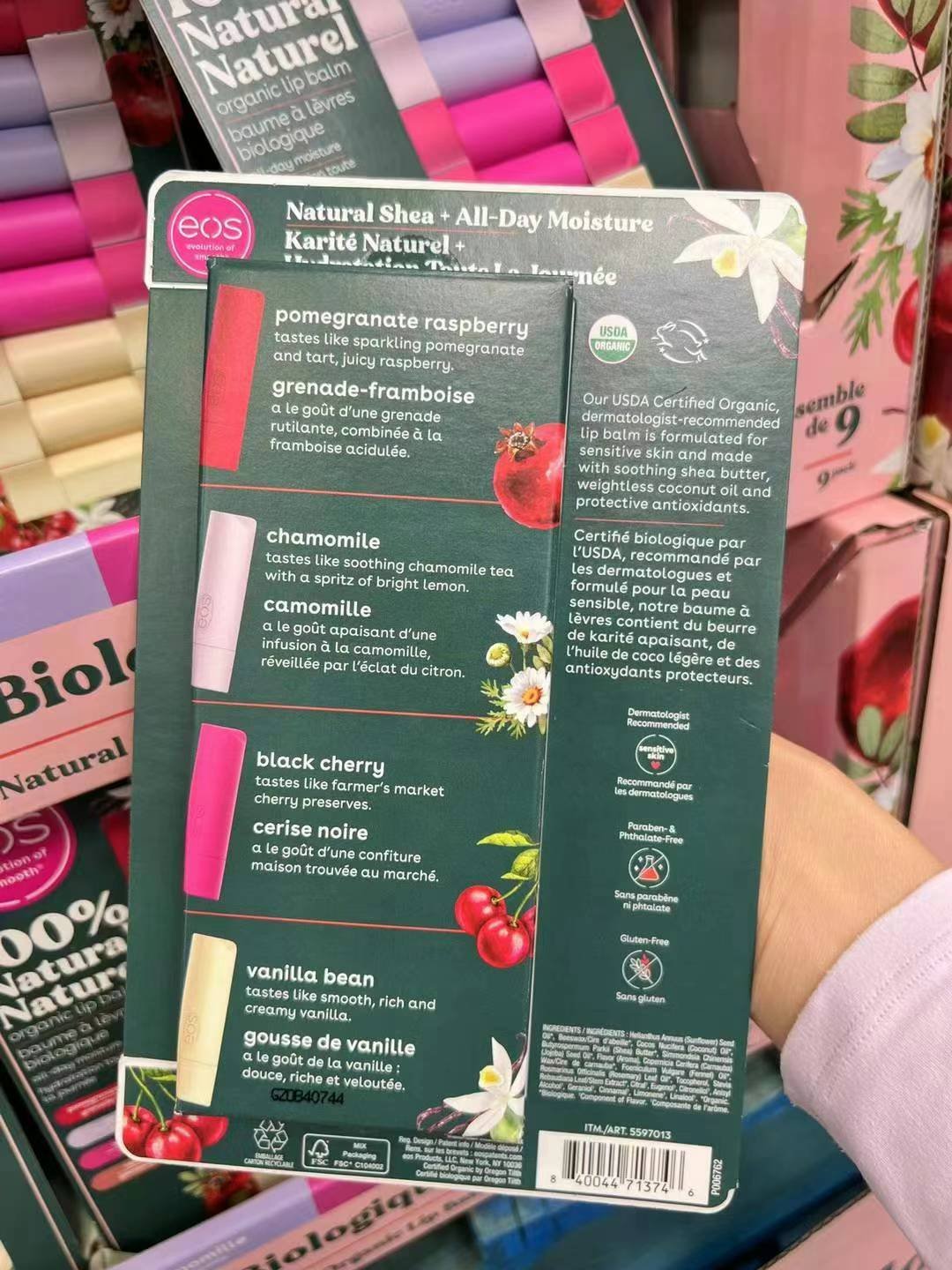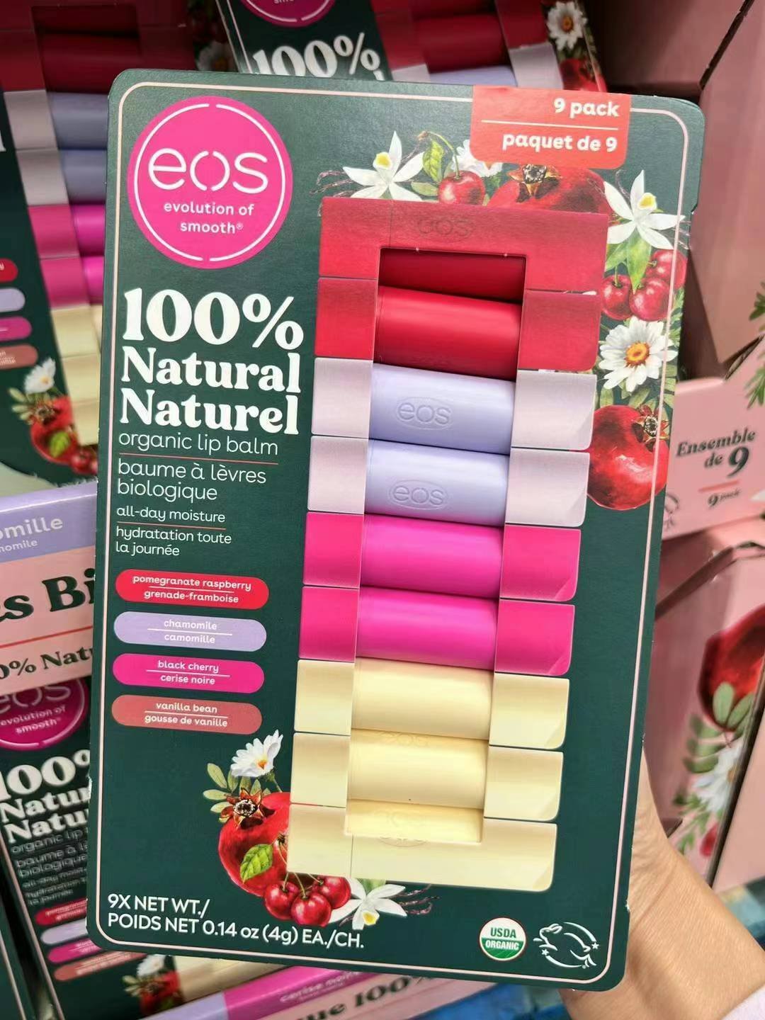特价🉐¥188/组9支,加拿大🇨🇦直邮❗️EOS100%纯天然有机润唇膏👄明星几乎人手一支!重点是100%天然有机成分,含有舒缓成分的乳木果油、荷荷巴油,以及高度抗氧化的维他命E,持久保持柔滑滋润,淡化唇纹。不含防腐剂!孕妇儿童都可以放心使用!造型和颜色都超可爱的,绝对是唇膏界的潮物哦!