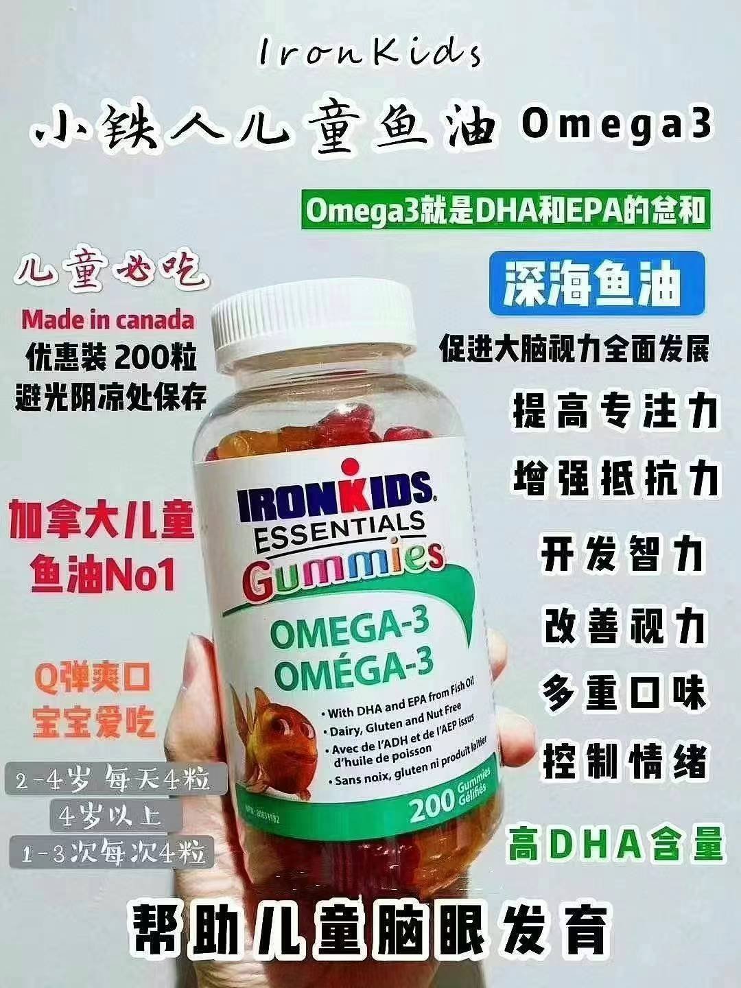💰218瓶,200粒!回购最多的🇨🇦Ironkids小铁人鱼油软糖,含有促进宝宝智力和视力发育所必须DHA和EPA,是目前市场上唯一一款100%从鱼油中提的Omega-3产品,绝不含汞和铅,比吃鱼更安全有效,鱼油可帮助儿童脑部和眼睛的发育及健康。