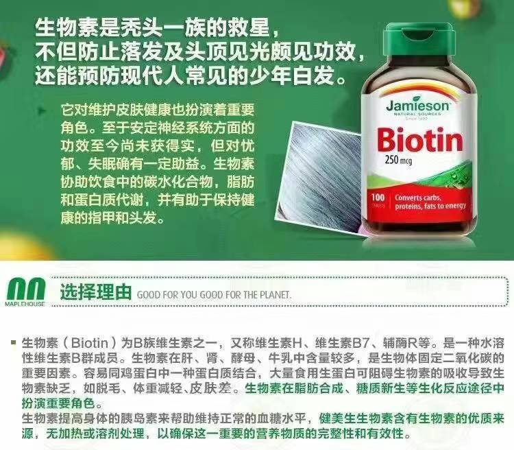 Jamieson健美生生物素biotin150粒, 10000mg的高含量,防脱发、生发、增发 、密发、促进毛发生长,防止少年白,秃头一族的救星。1瓶150粒,每日1粒