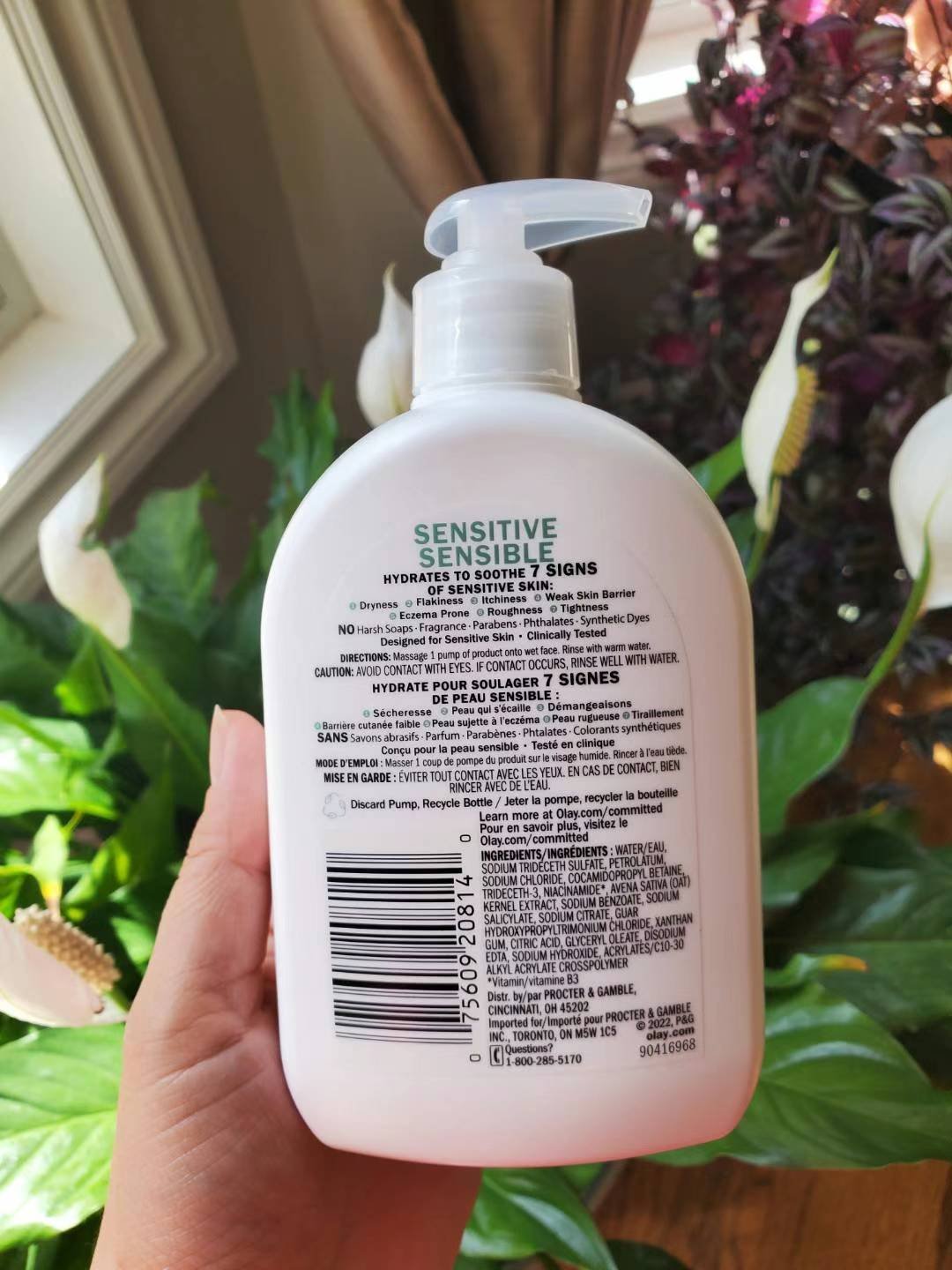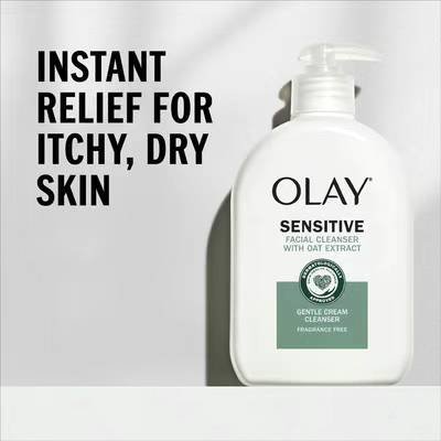 OLAY 敏感肌肤洁面乳,含有燕麦提取物和维生素 B3,可滋润肌肤,温和舒缓敏感肌肤的七种症状:干燥、脱皮、瘙痒、皮肤屏障薄弱、刺激和紧绷。使用温和的洁面乳,让您的脸感觉干净,但不会干燥和脱落。将一泵洁面乳按摩到已经湿润的皮肤上。用温水冲洗脸即可。大瓶装,泵头按压,非常实惠,473ml,量大到可以用做沐浴乳了。158直邮包税。只有2瓶,手快得。