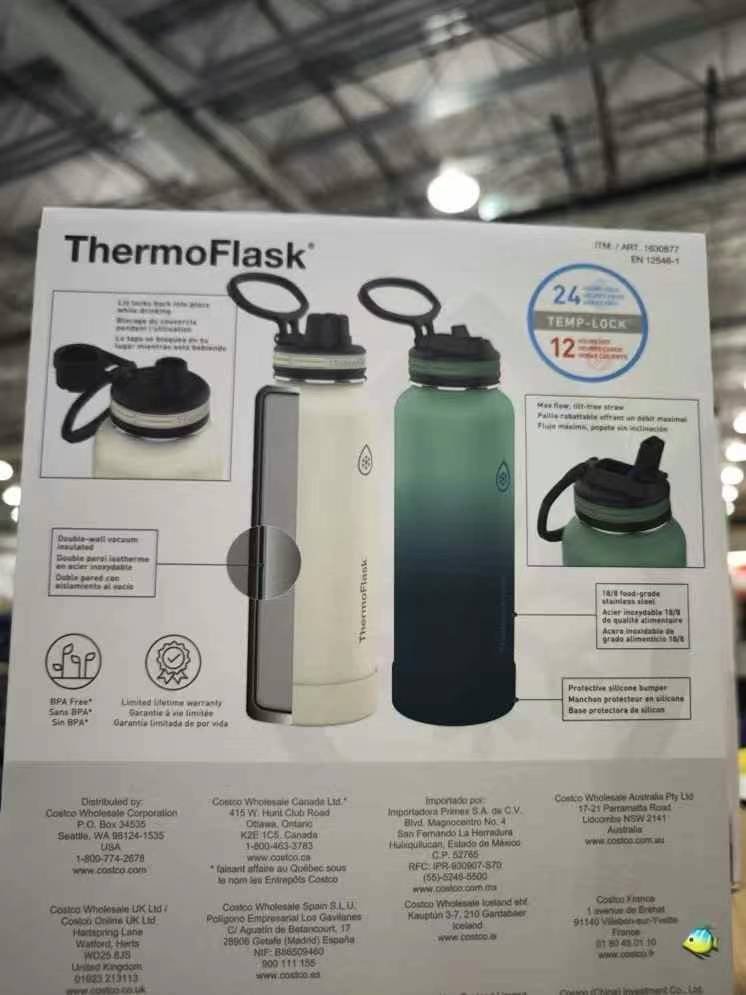 Thermoflask 膳魔师,双层真空不锈钢保温保冷杯子1.2L*2只/组Thermoflask 膳魔师,双层真空不锈钢保温保冷杯子1.2L*2只/组 Thermoflask 保温保冷杯 不锈钢杯子 两色可选 水杯采用18/8不锈钢材质,双层真空杯壁,保冷可达24小时!不含BPA,健康安全又方便!四季可用。