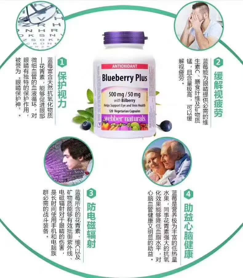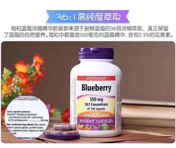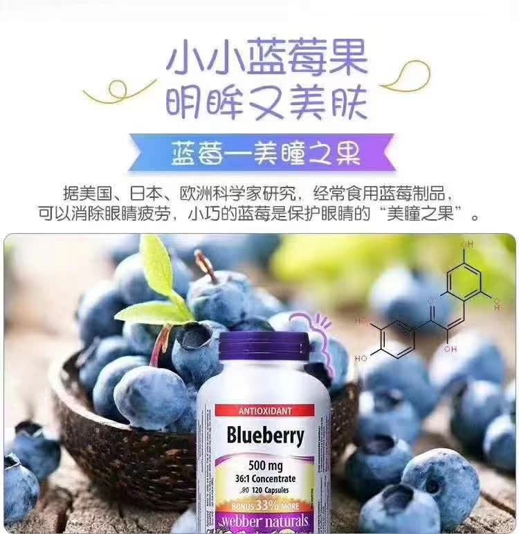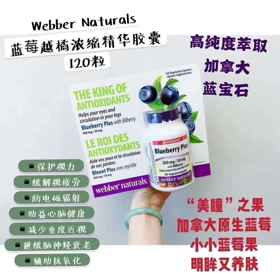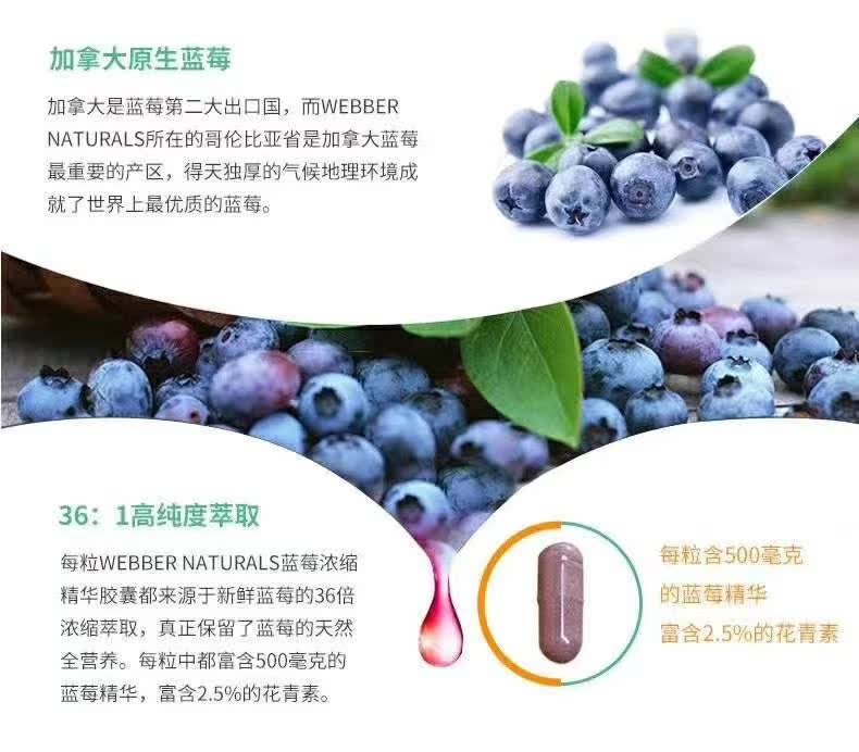 特价¥199,120粒,加拿大直邮到手❤Webber 蓝莓浓缩华精蓝莓,于产北美,号水称果之王,是让眼充睛满电力的秘武密器,蓝莓可高提脑力保,护视力、控糖,氧抗化,癌抗,抗氧化提,高抵抗。力蓝莓华精胶囊,36:1浓提缩取,一粒胶相囊当于18g新鲜蓝莓,搭配webber叶素黄护眼效更果佳!